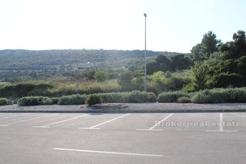Građevinsko zemljište površine 3142 m2, koje se nalazi uz cestu koja se nalazi nasuprot parkinga, na izlazu sa magistrale za aerodrom i Trogir. Zemljište je komercijalne naravi. Komunalni priključci u neposrednoj blizini. Postoji mogućnost dogovora za kupnju dodatnih okolnih parcela u vidu spajanja s magistralom. Lijepo i vrijedno zemljište koje se odlikuje blizinom aerodroma, Trogira, brze ceste za Split, magistrale, te izlaza za autoput.