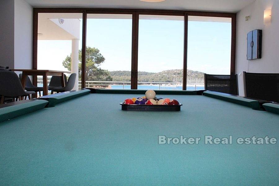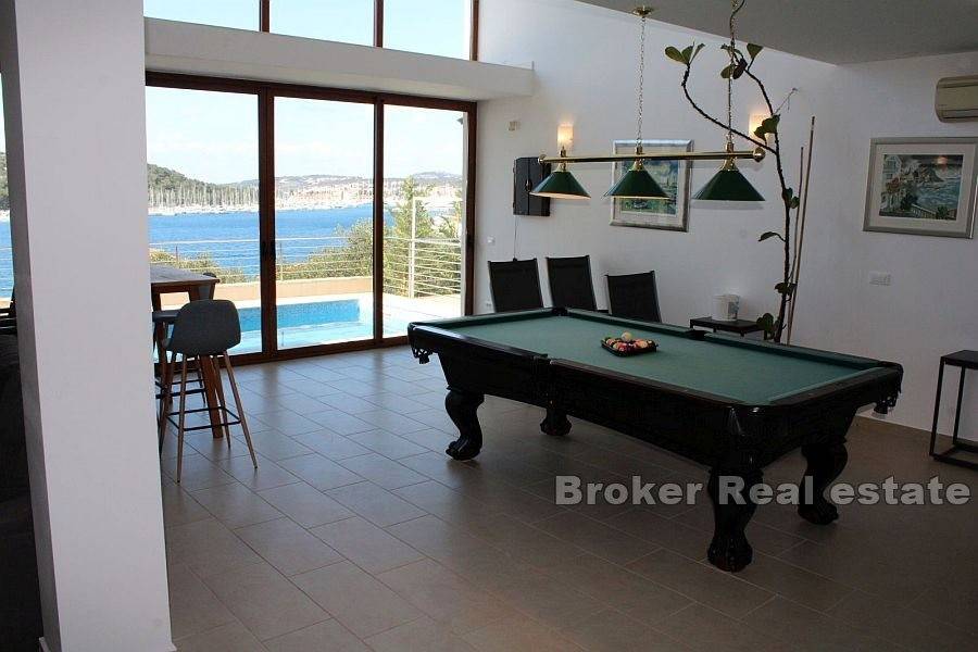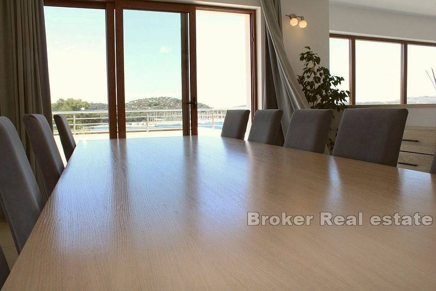 The first floor consists of a spacious living room with large glass sliding doors with the direct access to spacious terrace with 24 m2 swimming pool. A terrace offers beautiful sea and bay view from every corner.
