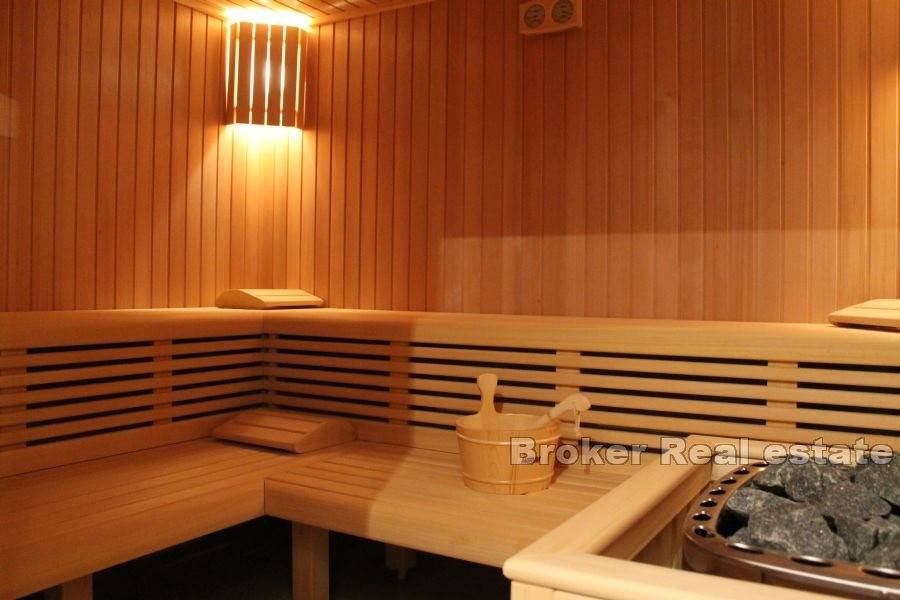 On this floor, are also situated, a bathroom , a sauna and a space that is designed as a wine cellar.