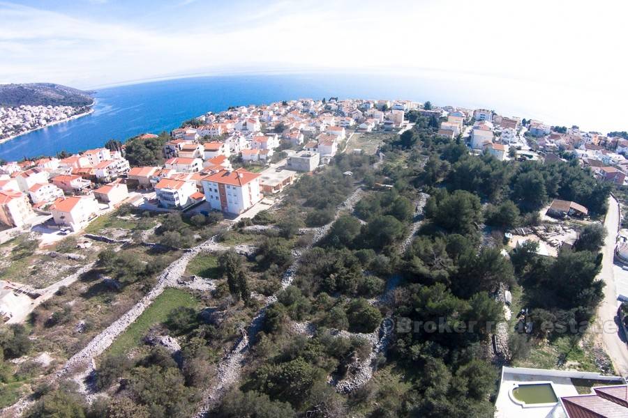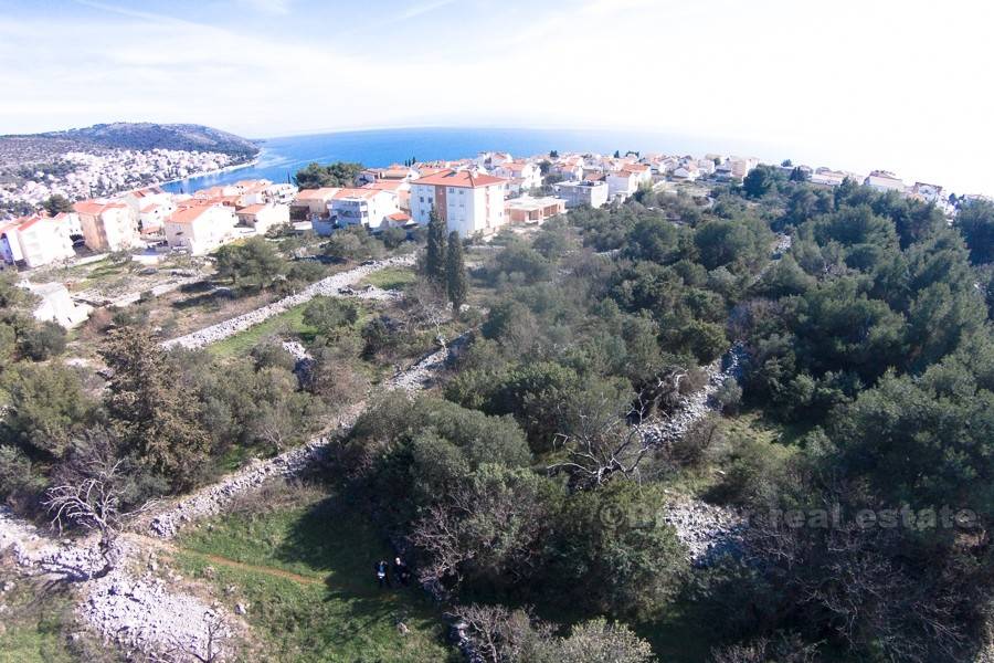 Građevinsko zemljište površine 3200m2, idealno za gradnju više urbanih vila. Zemljište je infrastrukturno opremljeno, odnosno priključci za vodu i struju se nalaze uz samo su zemljište. U radijusu od 500 metara nalaze se najljepše plaža otoka Čiovo, a pogled na more postojati će i sa donjih etaža budućih urbanih vila. Odlična lokacija, blizina aerodroma te Trogira, grada pod zaštitom Unesco-a, ovoj nekretnini daju posebnu vrijednost, koja predstavlja odlično priliku za potencijalne investitore.