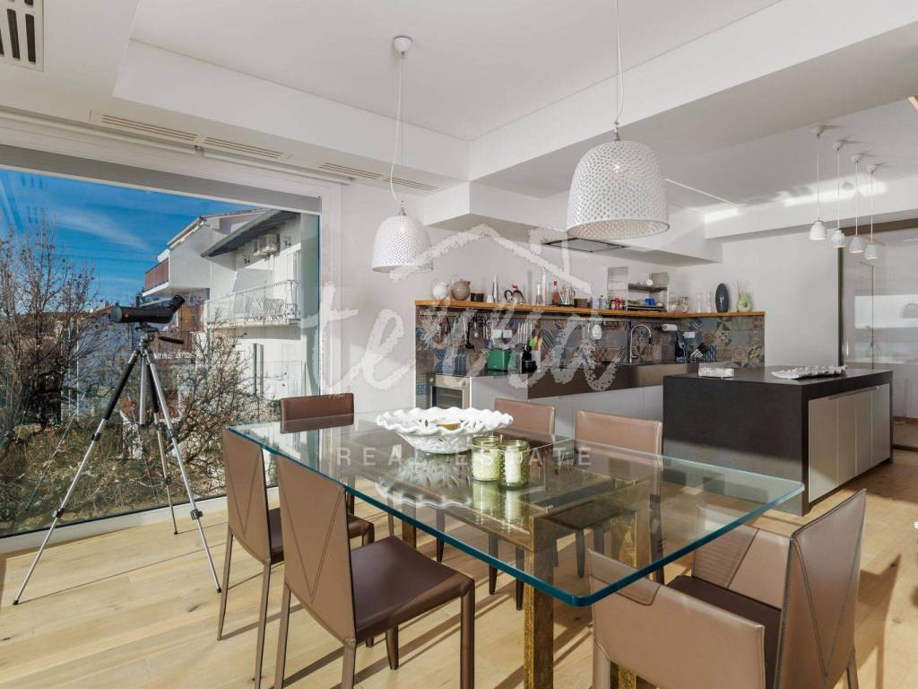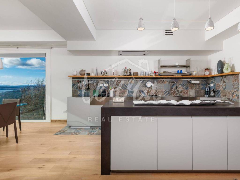 In the construction, 42 tons of steel were used for the design of the earthquake-resistant structure, the roof is made of zinc and titanium - a permanent solution, of exceptional quality, the external carpentry is a combination of aluminum and solid wood, three-layer glass in the color Bianco Absoluto.