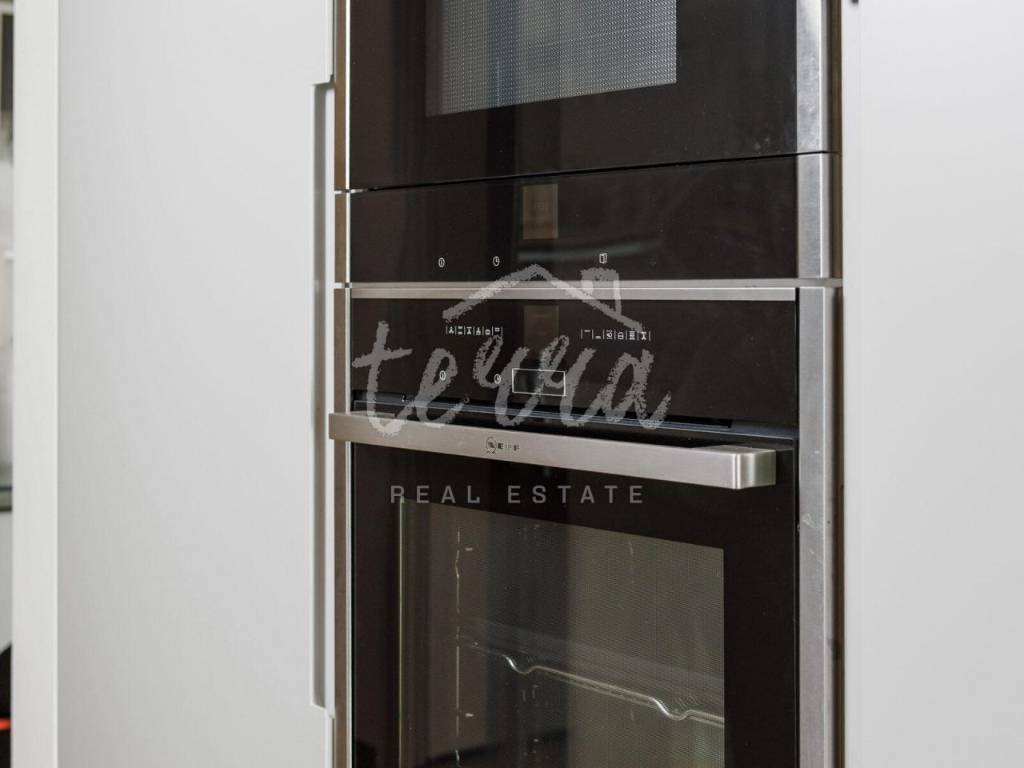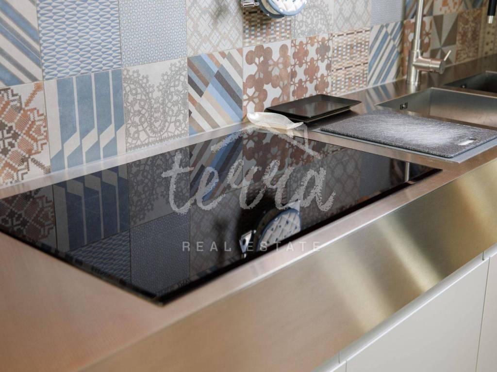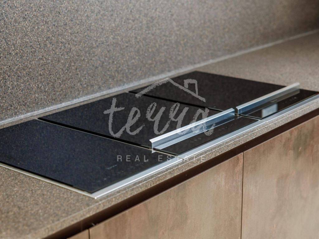The kitchen is handmade, made in one piece of stainless steel over 4 meters long, fully equipped with NEFF appliances.