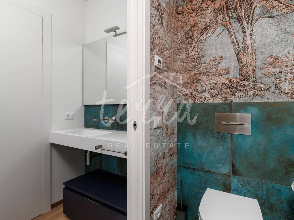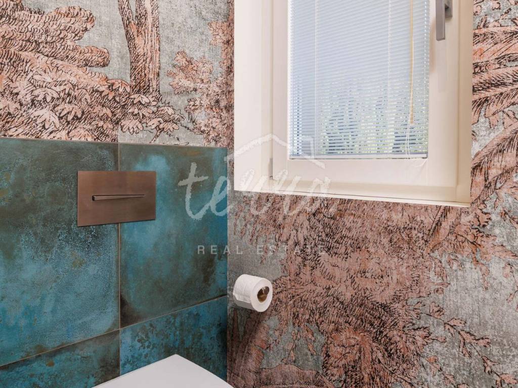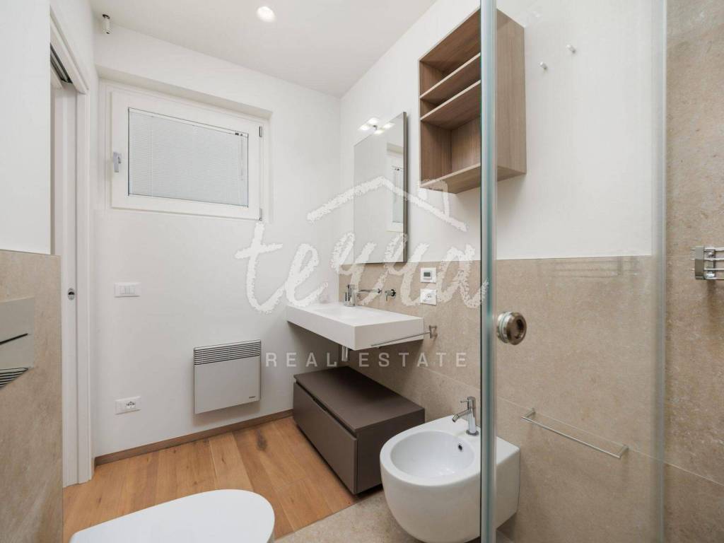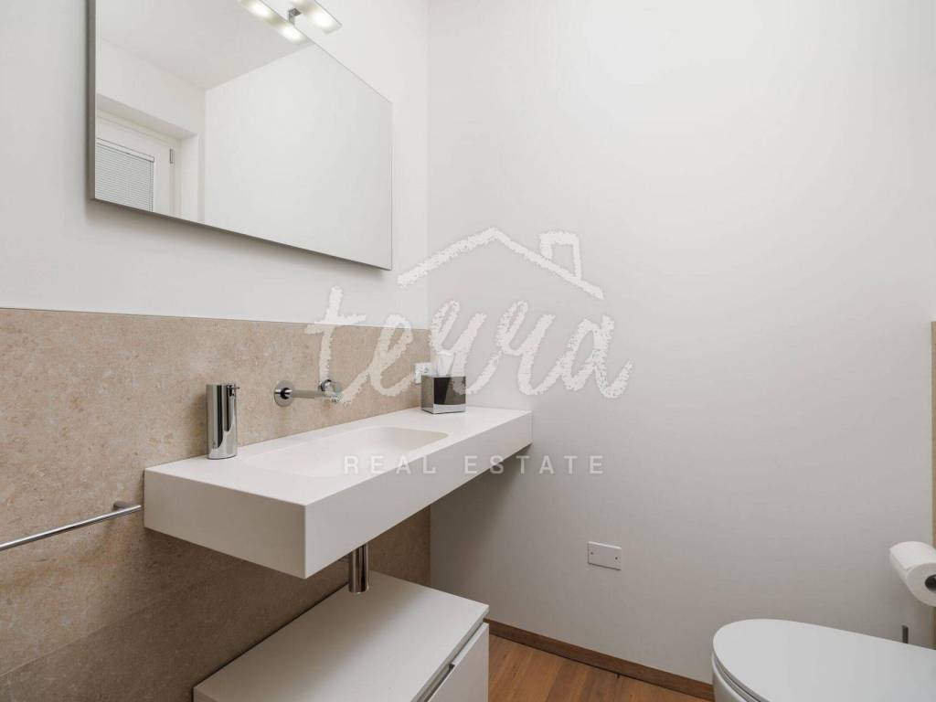 Modern bathrooms with tinted glass (visible from the inside to the outside and complete privacy from the outside) equipped with Radamonti sanitary systems.
