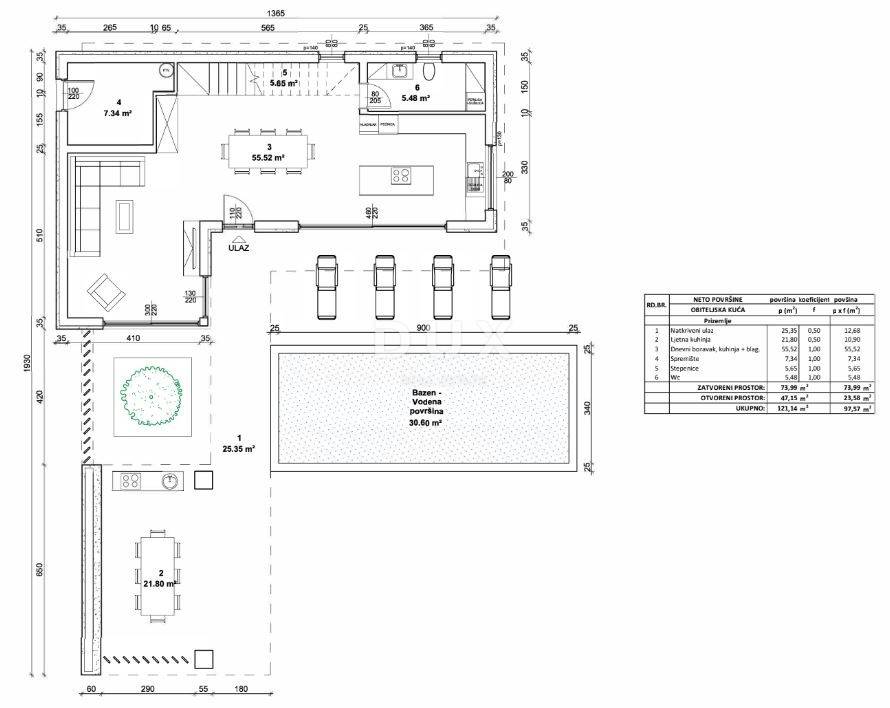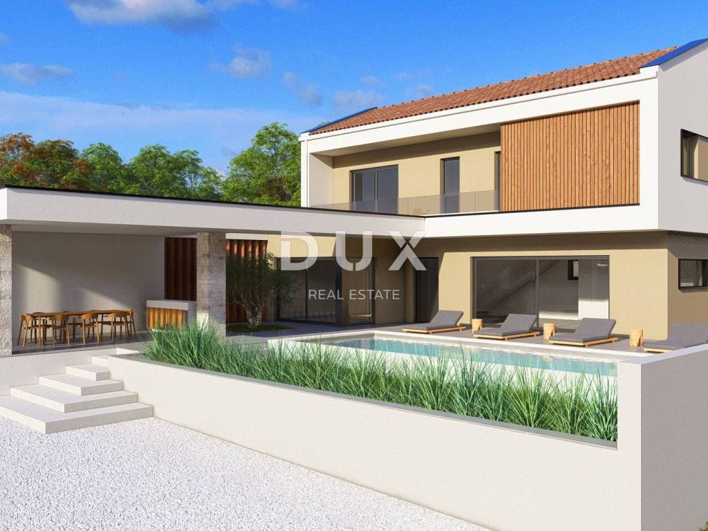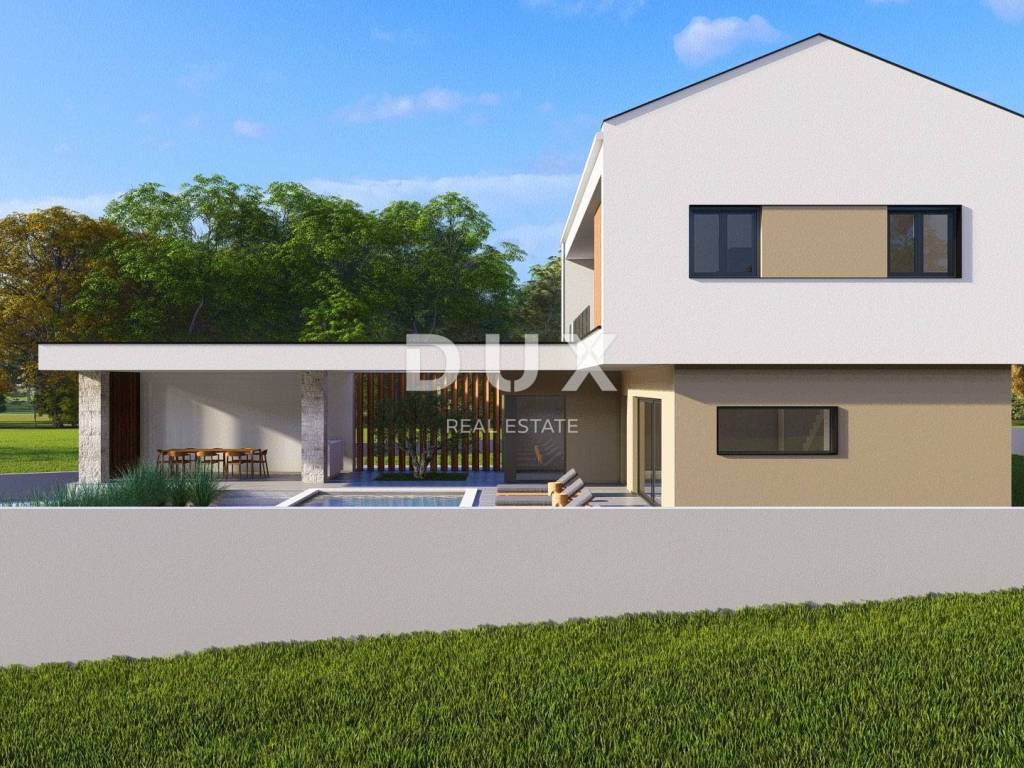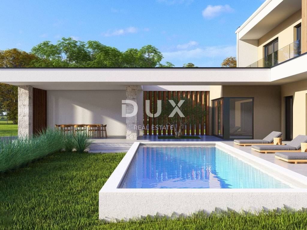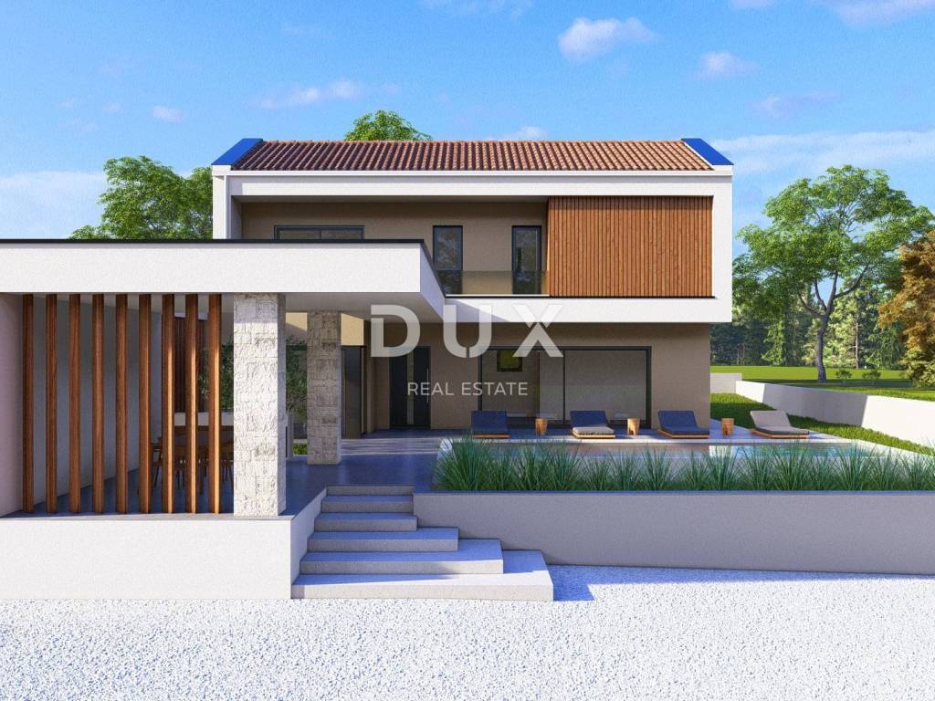 Not far from the center of Žminj, in a quiet and private environment, a modern villa of top-quality construction with a total net area of 161.5 m, with a swimming pool of 30.6 m, is for sale on a plot of 932 m.