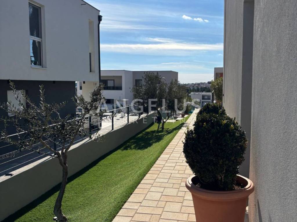 Competently furnished and luxuriously decorated villa for sale with an open sea view and a swimming pool is for sale, located in one of the most prestigious and desirable parts of Vodice, where the elegance of the landscape blends with modern architecture. Surrounded by peace and refined surroundings, just 1300 meters from the crystal clear sea, this property represents the perfect harmony of design, comfort and prestige, with a captivating sea view that provides a sense of exclusivity every day.