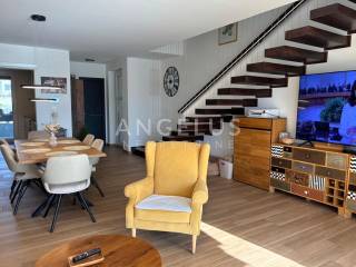 The villa extends over two floors, with a total net area of 220 m2, which includes a living space of 138 m2, terraces of 68.9 m2, balconies of a total area of 11.7 m2 and a covered entrance of 1.4 m2. The total area of the garden including the swimming pool is 182 m2. The villa also has its own closed garage and two parking spaces.