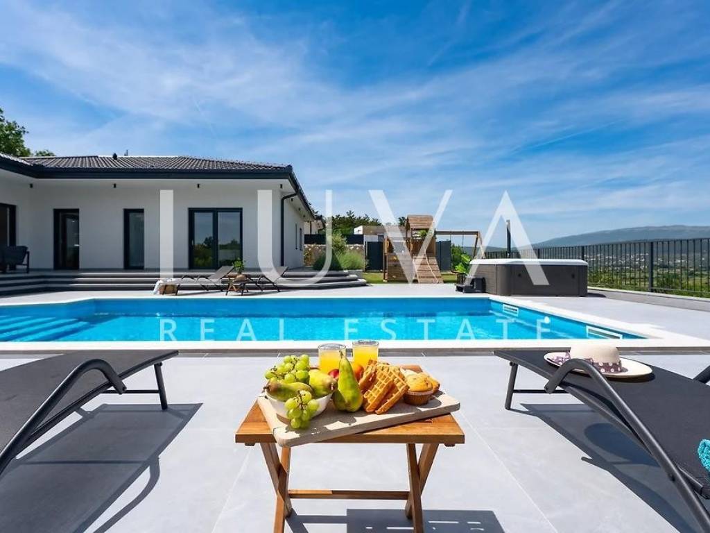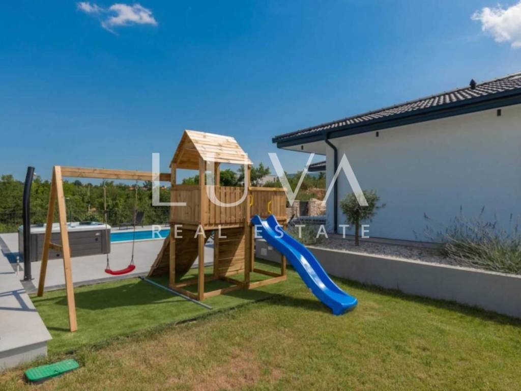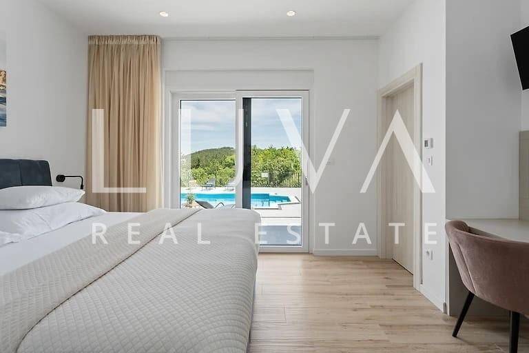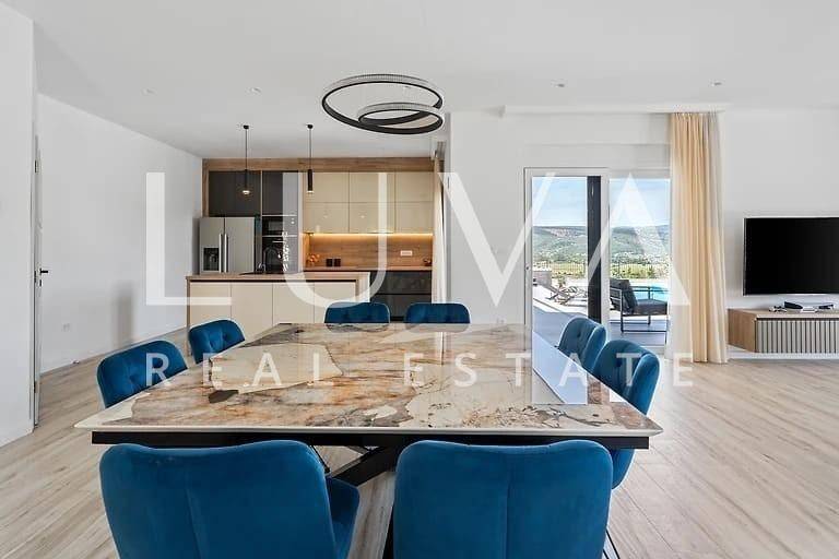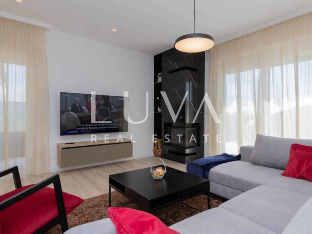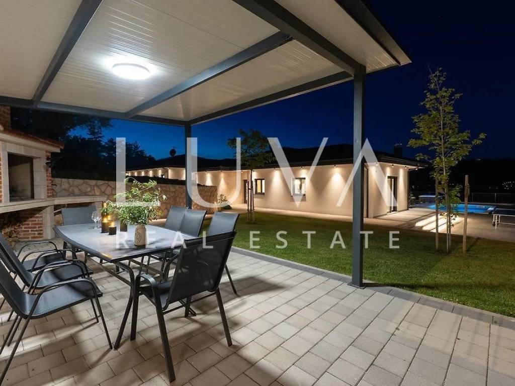 A modern, beautifully furnished house of 165 m² is for sale, situated on a spacious 1040 m² plot in the peaceful and idyllic surroundings of the Dalmatian Hinterland.