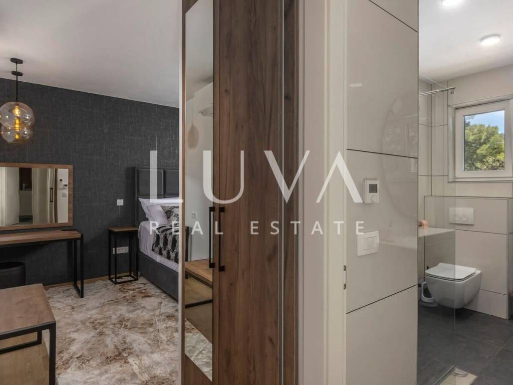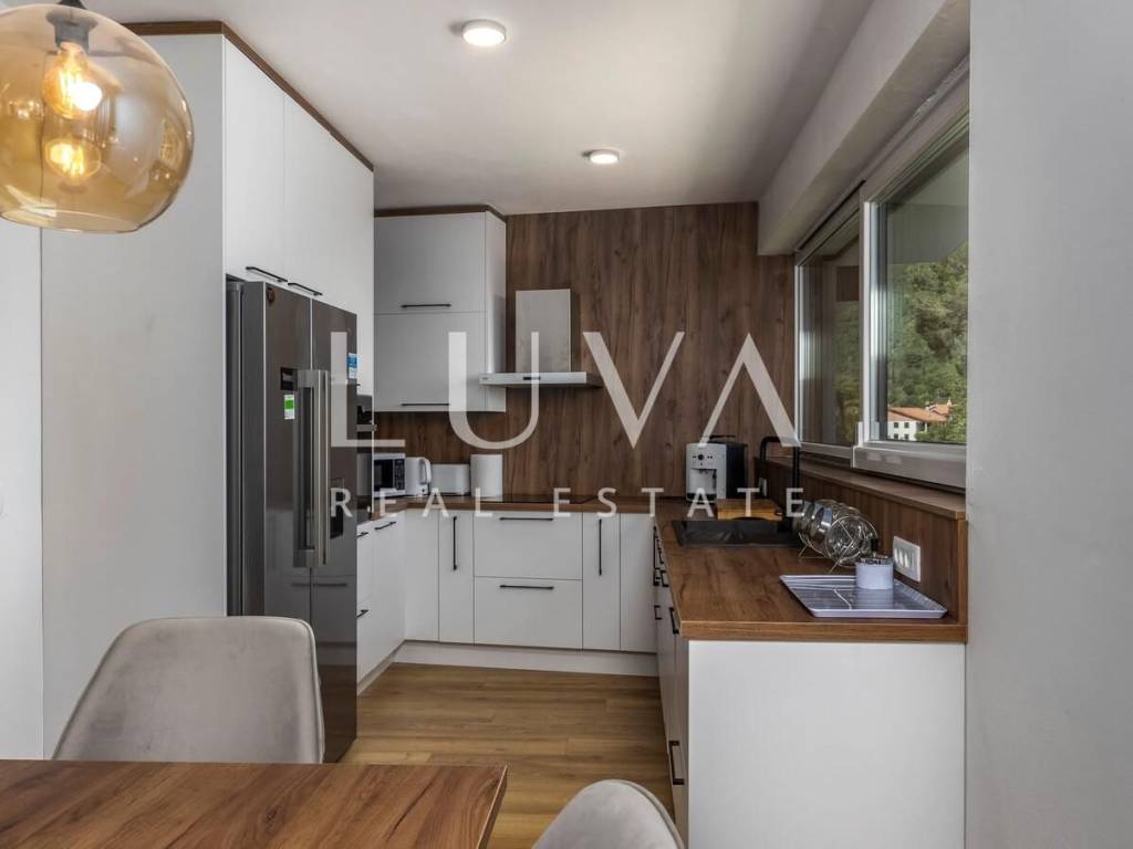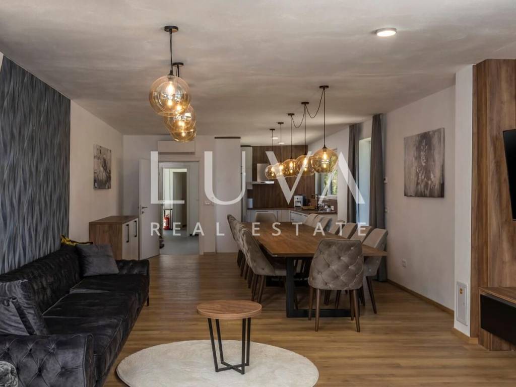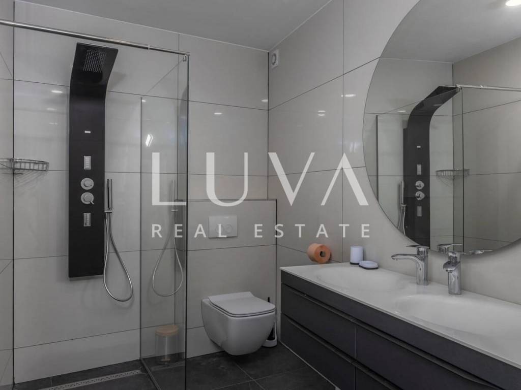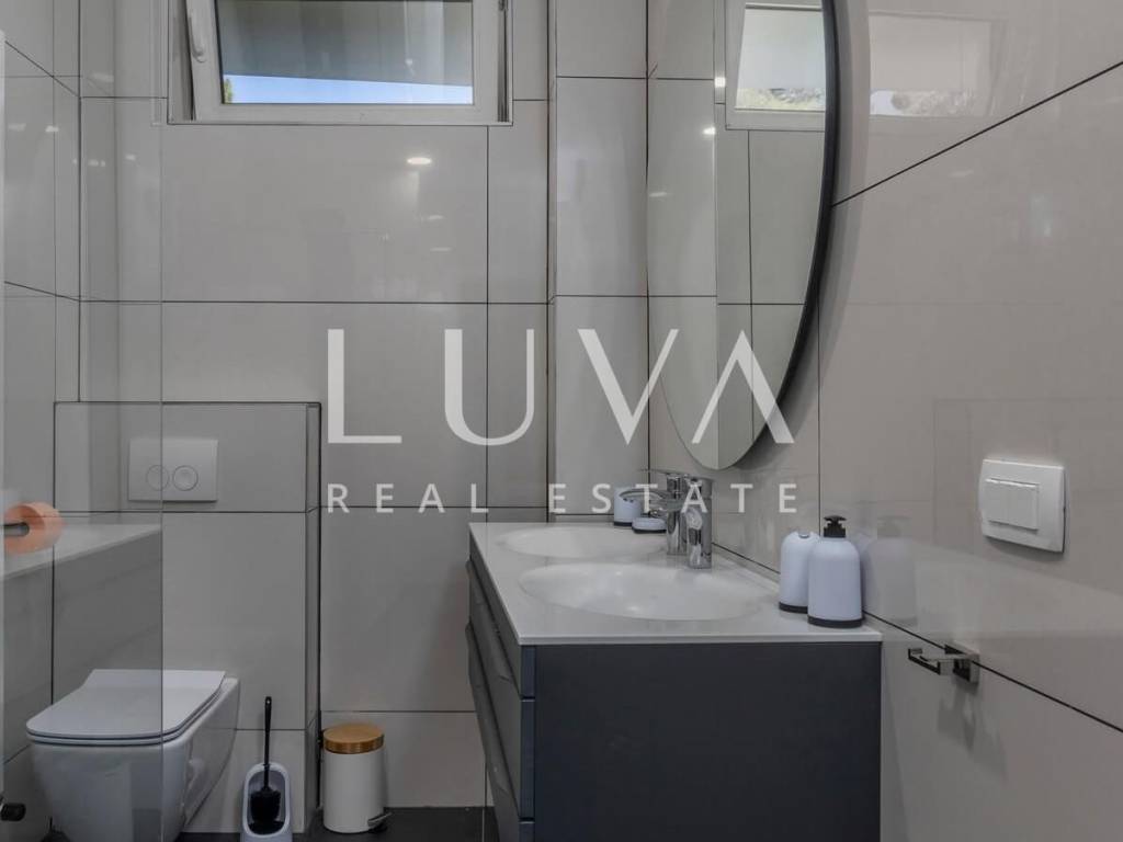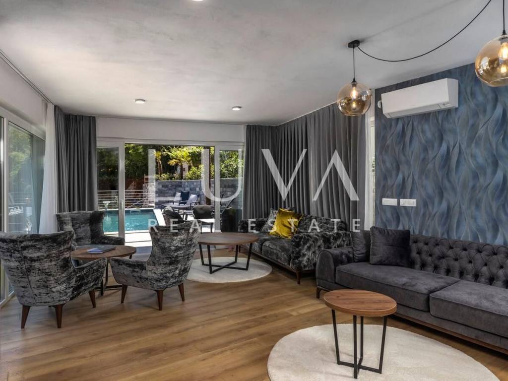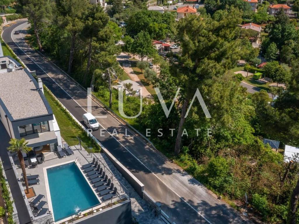 A luxury villa with a pool for sale in Mošćenička Draga, near Opatija. This modern luxury villa was built in 2022 and is located very close to the sea. It has 400 m² spread over 3 floors. The villa features a spacious living room, a fully equipped kitchen, 6 bedrooms, 8 bathrooms, and a wellness room with a sauna and Jacuzzi. The entire property is fully fenced and includes parking for 6 cars.