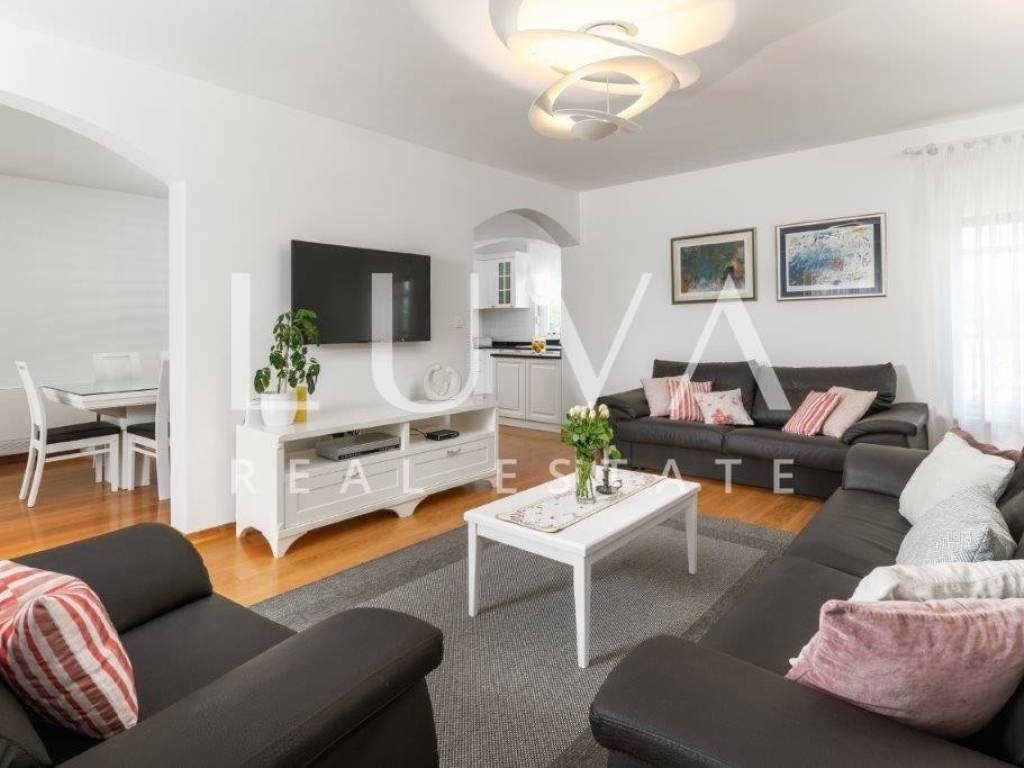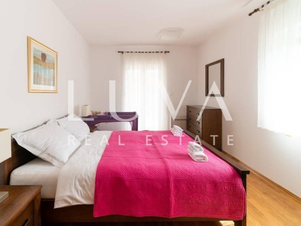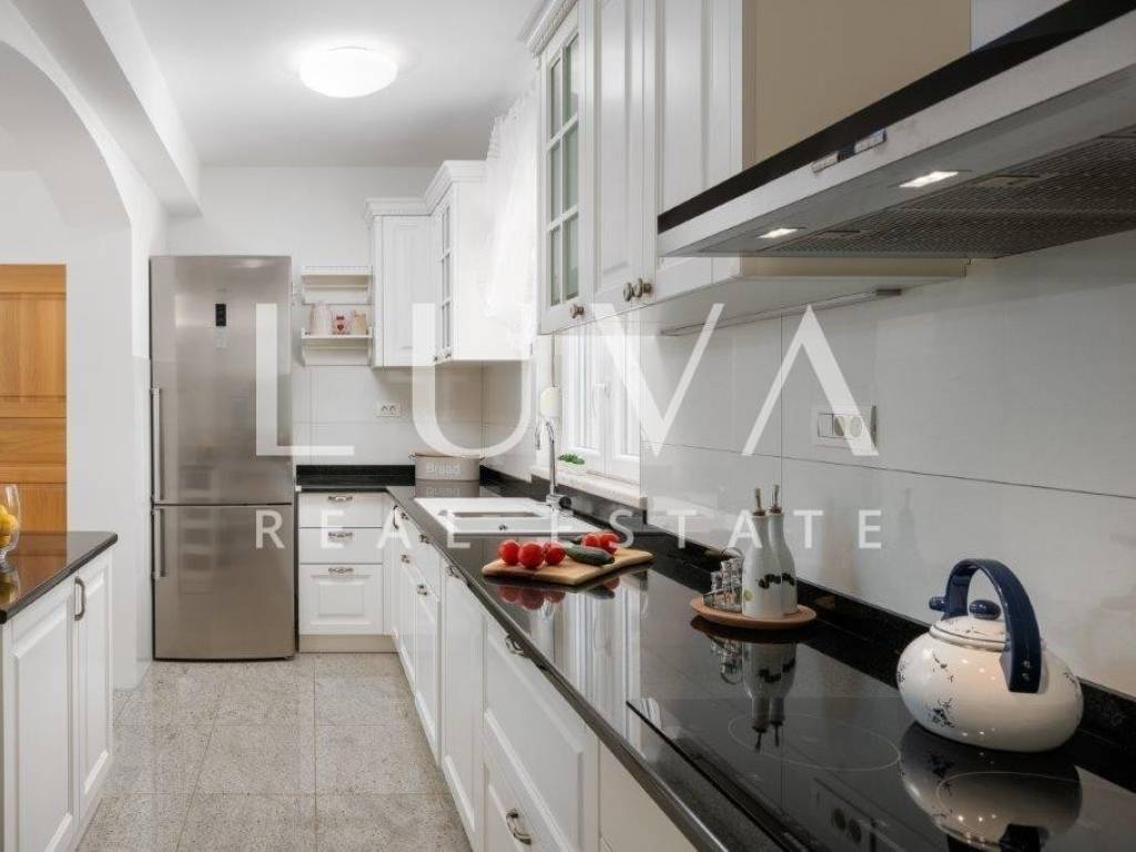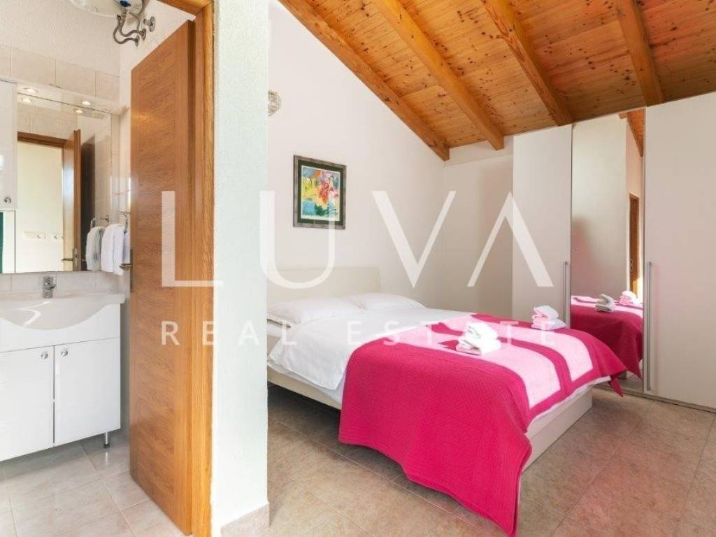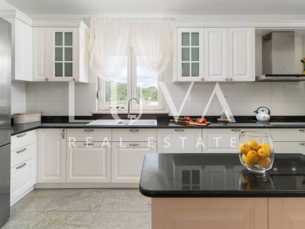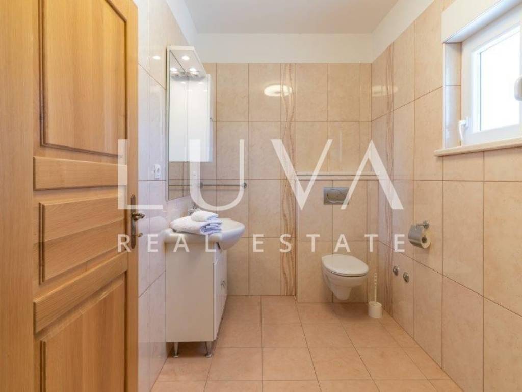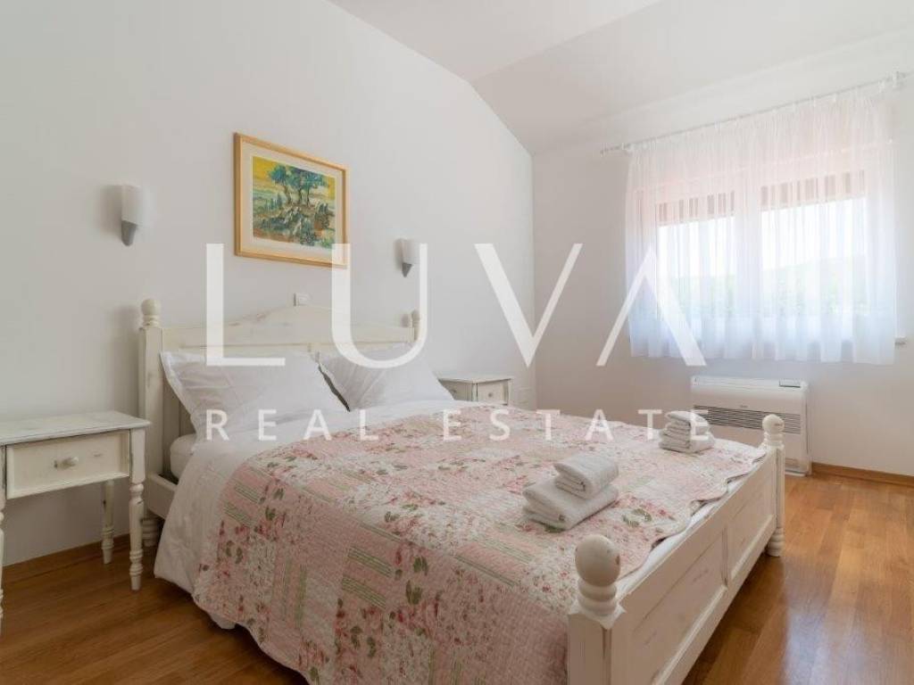 A holiday house is for sale, located on a large estate in Dicmo. Dicmo is a charming village in the Dalmatian hinterland, well connected to Split and just a few minutes' drive from the highway. The house is situated on an exceptionally large estate of 13,092 m², fully fenced, ensuring peace and privacy for its residents. Built in 2014, the house has a surface area of 270 m² and spans 3 floors. It features 6 bedrooms, 4 bathrooms, and 2 toilets. In front of the house, there is a large outdoor pool and a covered terrace with a dining table, while the back of the house provides ample parking space and a garage for 2 cars. In front of the pool, there is also a tennis court, and the estate has enough space for additional playgrounds, making it ideal for sports enthusiasts.