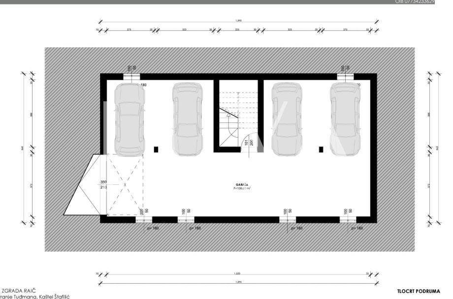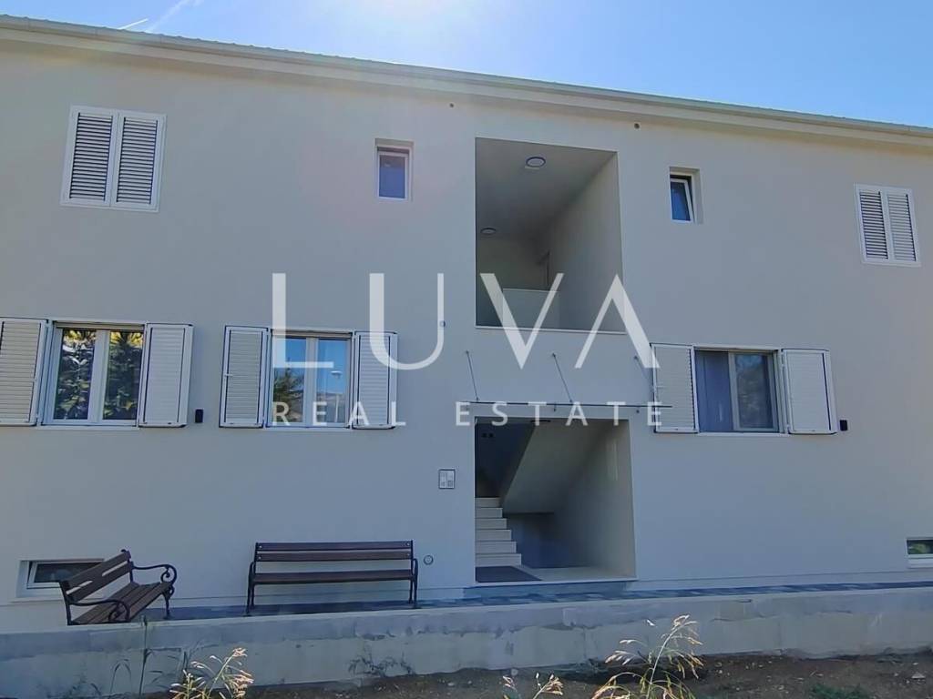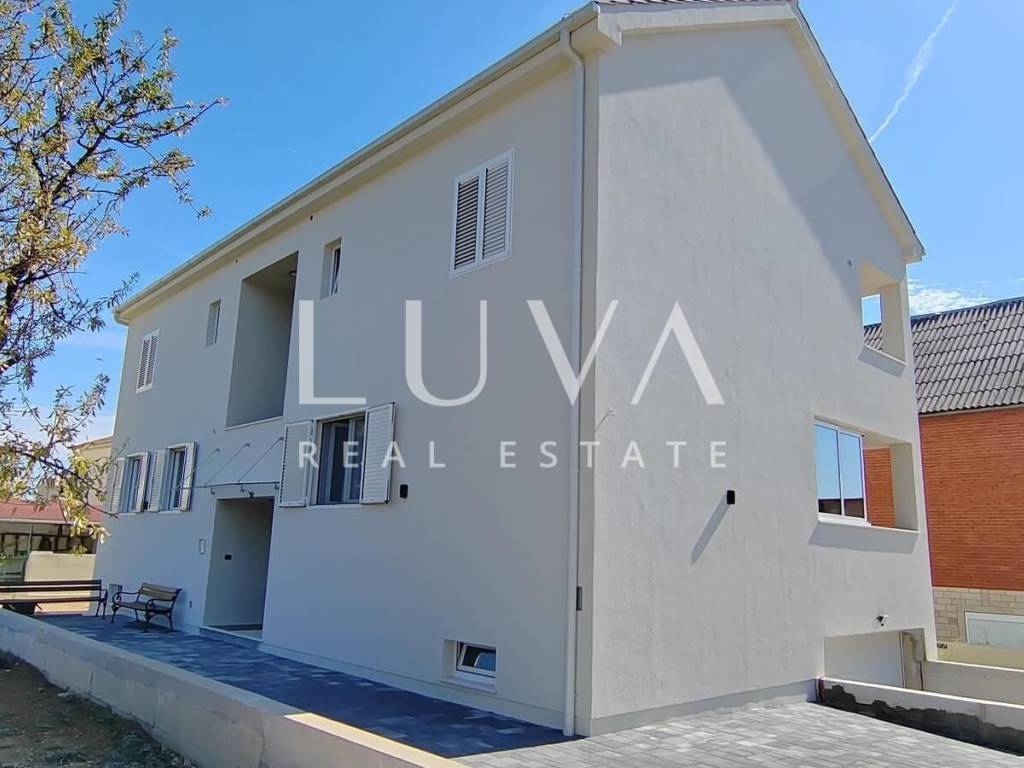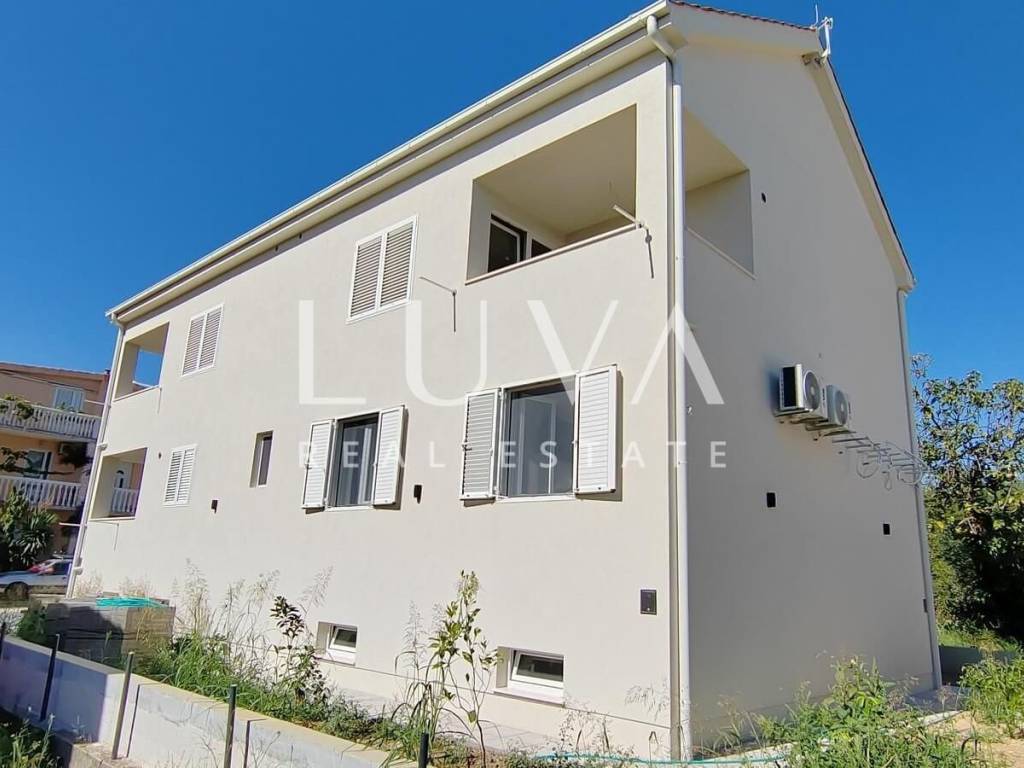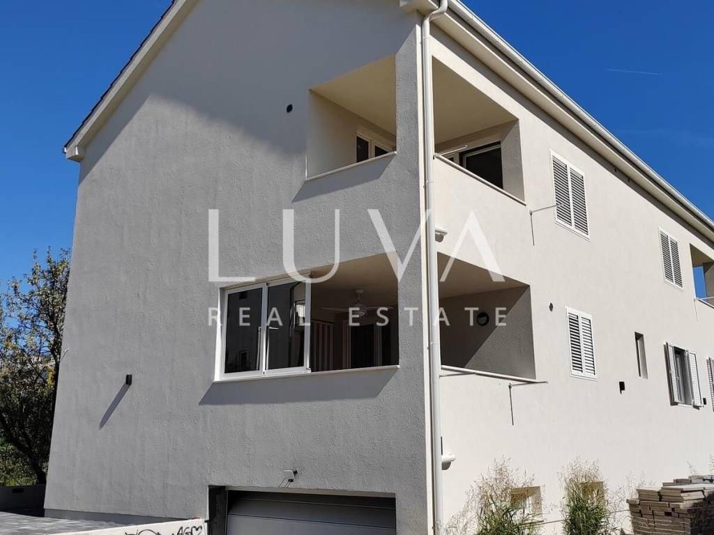 Newly built house for sale in Kaštel Štafilić, only 400 meters from the sea. The total net living area is 377 m2 (with basement and without staircase). The house is divided into four floors: basement (garage), upper ground floor, first floor and attic.