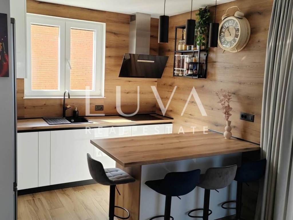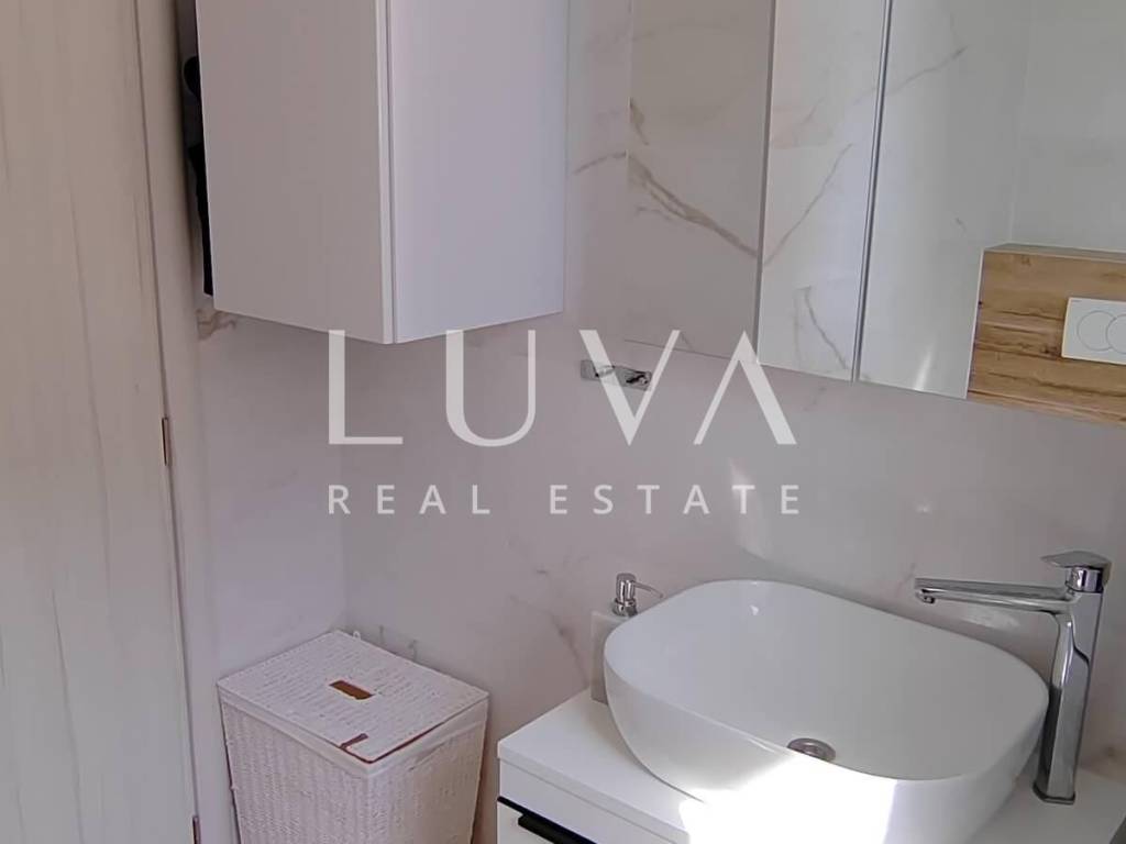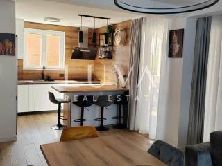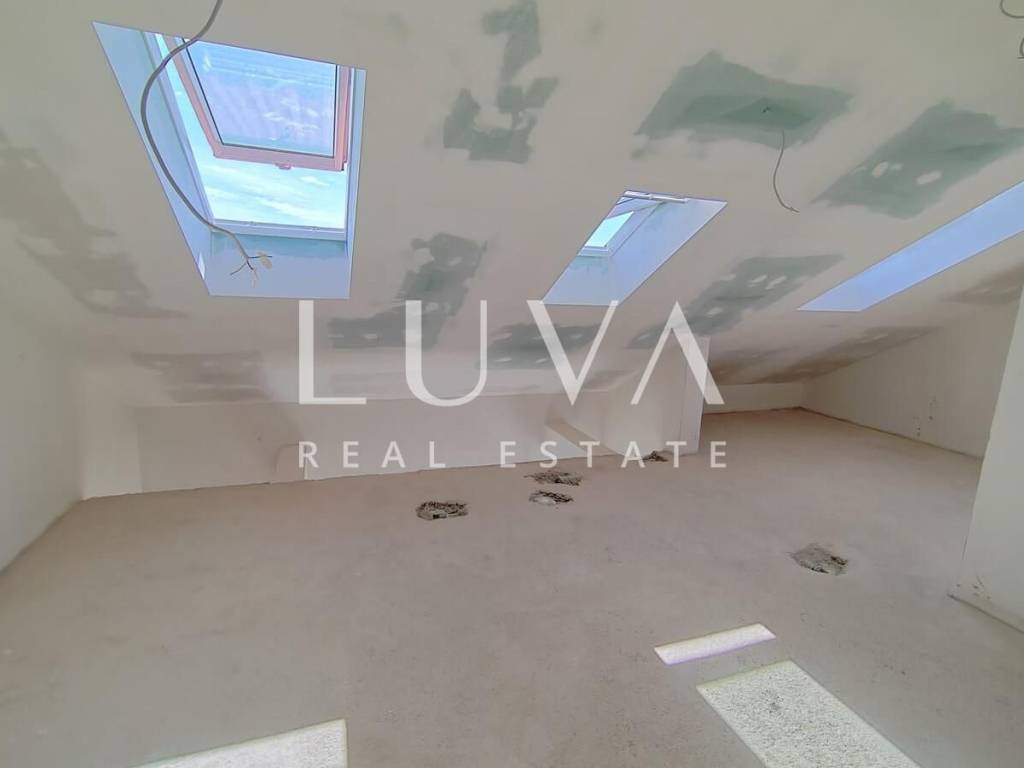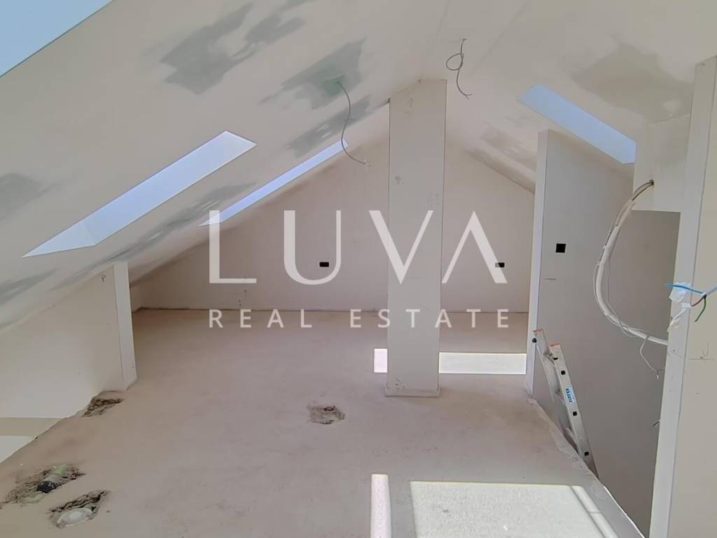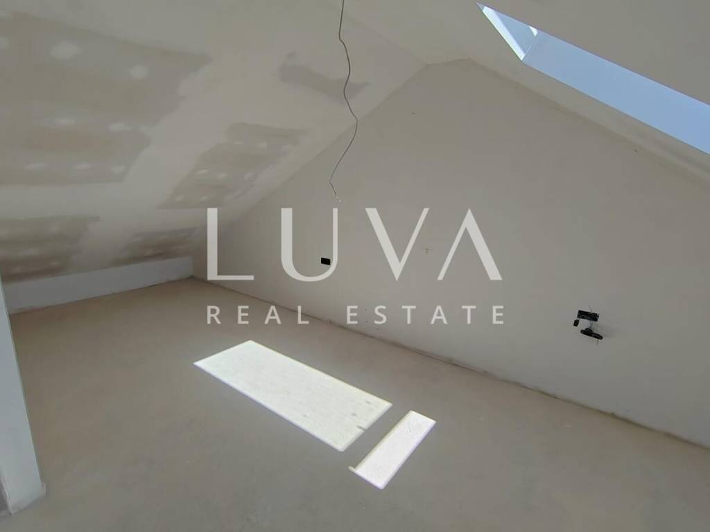 The apartment on the ground floor has underfloor heating throughout the entire apartment + air conditioners, the apartments on the first floor have underfloor heating in the toilets + air conditioners. The highest quality materials were used during construction: Aluminum shutters, Gelan 7-chamber windows with 3-layer glass, Velux windows with different opening models, 10 cm Styrofoam facade, partition walls built with 10 cm Porotherm bricks, Harman garage doors and internal garage spaces with provision for charging electric cars, on the roof storage preparation for solar panels. We are at your disposal for all additional questions