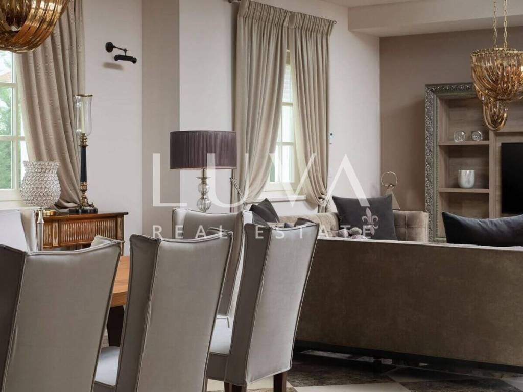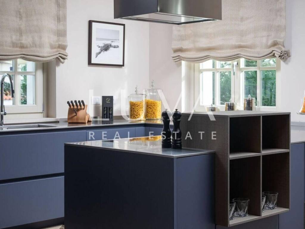 Built in 2018, the villa spans 287 m² across two floors, featuring a classic elegant design both inside and out. The ground floor houses a fully equipped kitchen and a spacious living room with access to a covered terrace, where you'll find a barbecue and a large dining table. In front of the terrace is an outdoor pool surrounded by sun loungers. In addition to the living room, the villa has 4 bedrooms, each with its own bathroom. This luxury villa, like the others in the complex, is currently used for tourist rentals and presents a good investment opportunity in Istrian tourism.