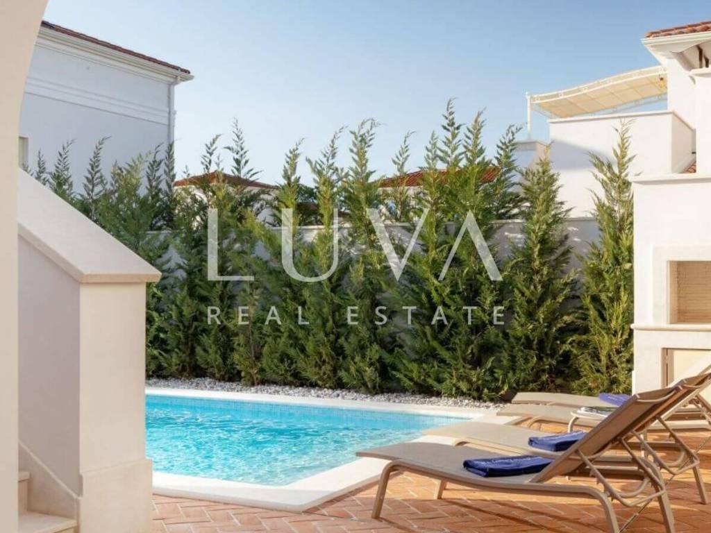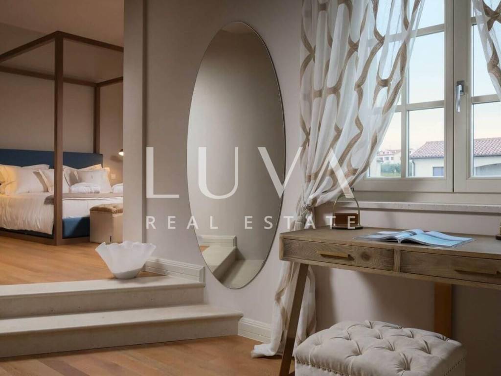 For sale: A luxury villa with a pool in the quiet village of Vabriga, near Poreč, on the western coast of Istria. This villa is part of a complex of luxury villas with beautifully landscaped surroundings and infrastructure. Other villas in the complex are also for sale, making it possible to purchase multiple properties. The entire 707 m² estate is fully enclosed to ensure privacy, with parking provided.