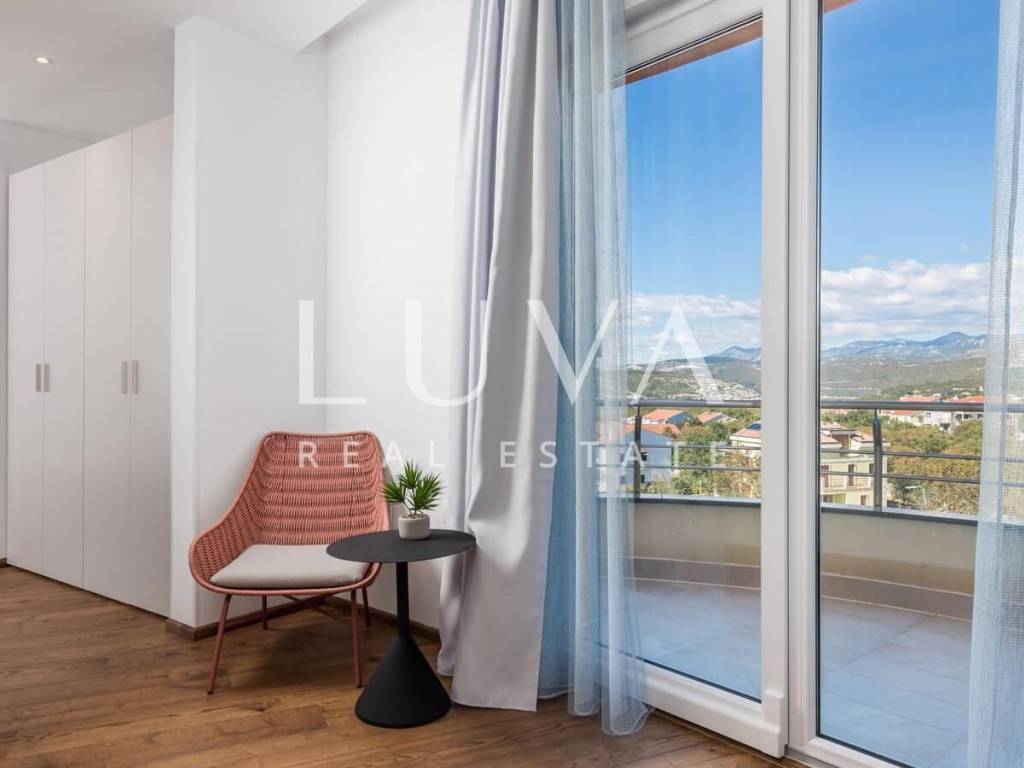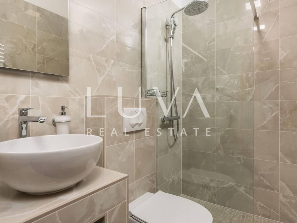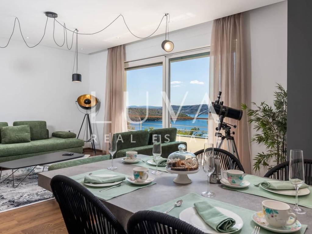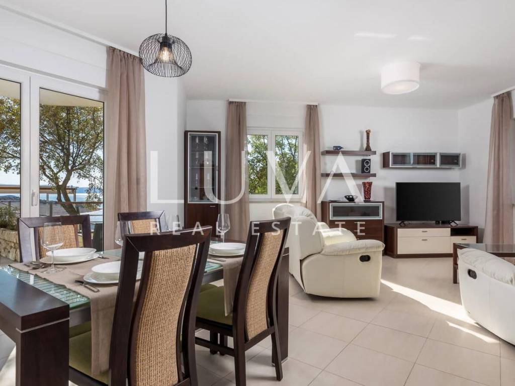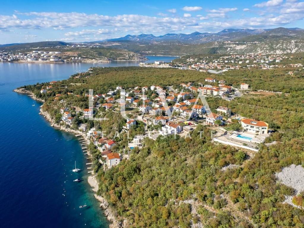 A luxury house with a pool is for sale on a large estate in a secluded area near the sea in Kraljevica. Kraljevica is a charming, quiet place near Rijeka and the island of Krk. The house is located on the edge of town, the last house next to a green belt, ensuring a lot of privacy. The spacious plot of 2,400 m2 is fully fenced and has ample parking space, as well as a garage. Situated on an elevated part, the house offers stunning panoramic views of the sea, Krk Bridge, and the island of Krk from all floors.