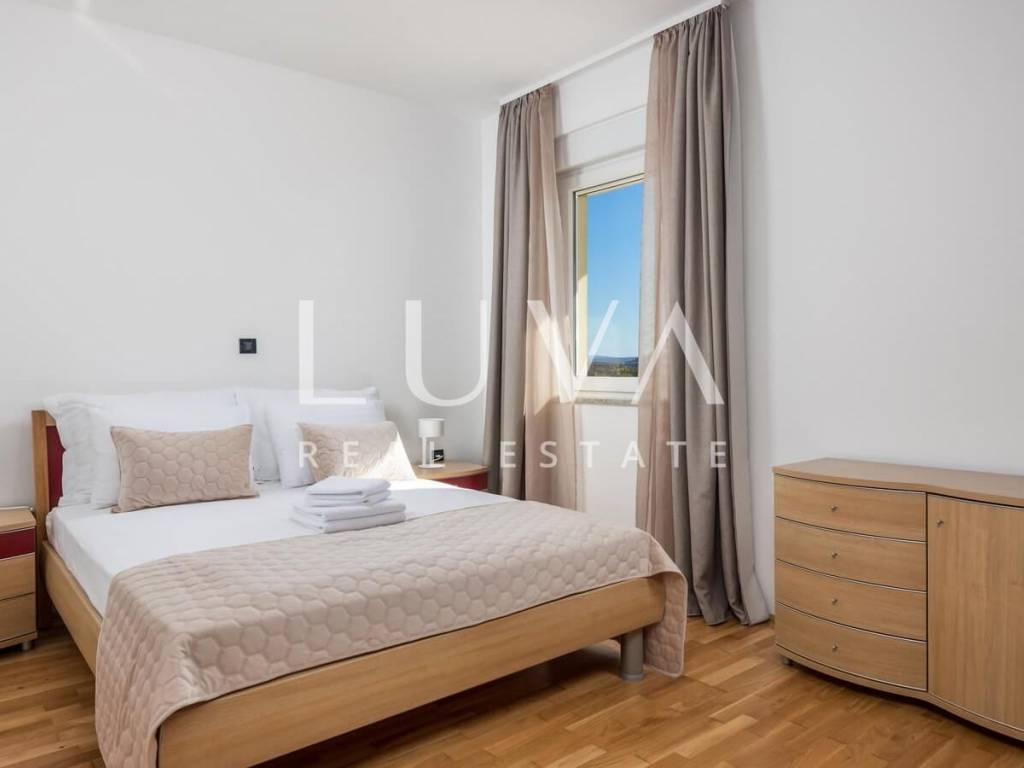 The house was built in 2003 and completely renovated in 2022. It has an area of 470 m2, spread over 3 floors, and contains 5 bedrooms and 4 bathrooms. On the ground floor, there is a living room and a fully equipped kitchen that opens onto a spacious terrace. The terrace features a large outdoor pool, barbecue, and lounge corner set. In addition to the large front terrace, the house also has a covered terrace at the back and a terrace on the top floor, offering the most beautiful panoramic view.