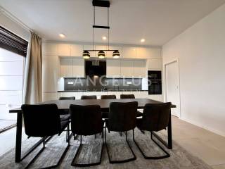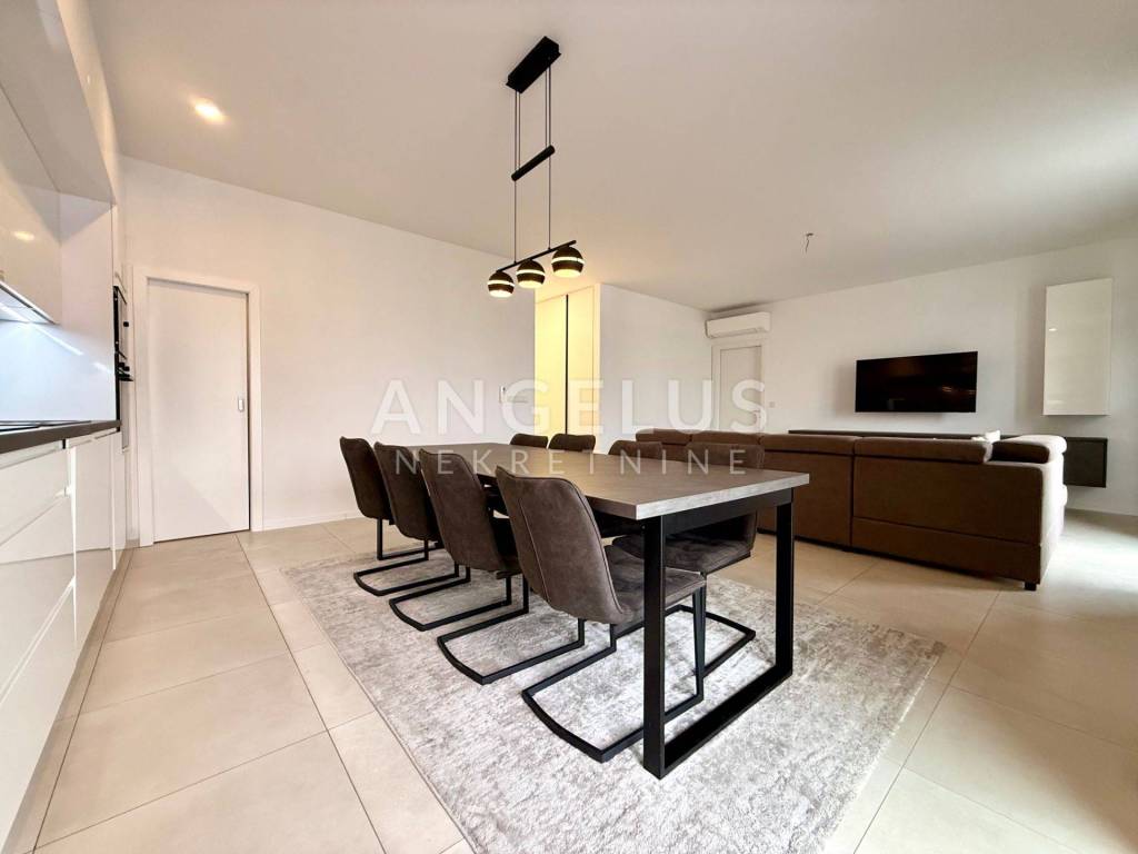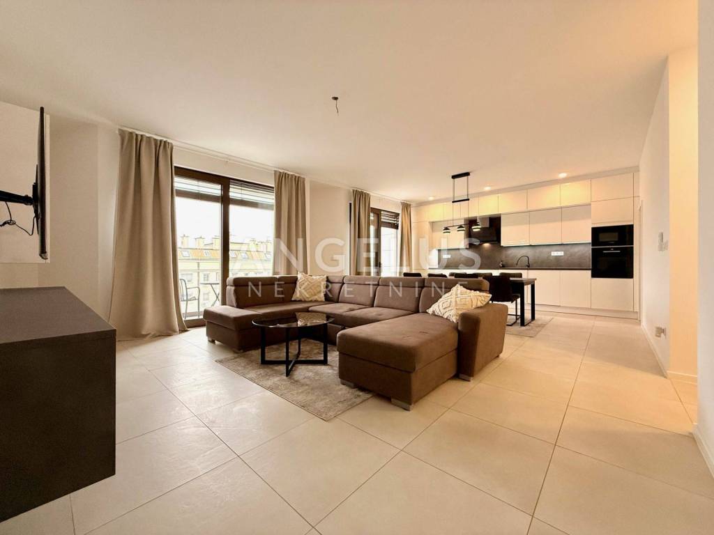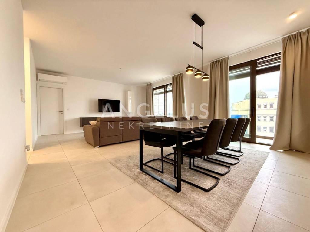 The apartment of approximately 120m2 consists of an entrance hall from which there is access to almost all rooms in the apartment, a large open space (approx. 40m2) in which there is a fully equipped and furnished modern kitchen with pantry, dining room and living room, loggia, three bedrooms, one of which is at the entrance to the apartment and across from it is a bathroom with a "walk-in" shower, the other two rooms are located behind the living room, separately. One room has its own "walk-in" wardrobe, the second room has built-in wardrobes and there is also a bathroom with a "walk-in" shower.