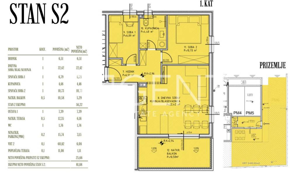 L'appartement S1 est situé au premier étage d'un immeuble neuf moderne à Kaštel Stari, dans un endroit calme et agréable, idéal pour la vie quotidienne. Grâce à sa disposition fonctionnelle et à ses équipements de qualité, c'est un excellent choix pour les couples, les petites familles, mais aussi pour les investisseurs à la recherche d'une propriété sûre dans une partie attrayante de Kaštela. La superficie nette totale de l'appartement est de 58,40 m². Il se compose d'un couloir, de deux chambres, d'une salle de bain et d'un salon décloisonné avec salle à manger et cuisine de 25,69 m², qui constitue la partie centrale et la plus spacieuse de la maison. Le salon donne sur une terrasse couverte de 7,25 m², idéale pour le café du matin, la détente ou les réunions en plein air. L'appartement est équipé d'un chauffage au sol, de la climatisation, de menuiseries en PVC et d'une porte blindée, tandis que les revêtements de sol sont en stratifié, ce qui donne à l'espace chaleur et aspect moderne. Les grandes surfaces vitrées permettent une abondance de lumière naturelle et une atmosphère agréable tout au long de la journée. L'appartement est livré avec une place de parking extérieure non couverte ainsi qu'une place de parking dans le garage, ce qui augmente considérablement le niveau de confort et de commodité. La propriété est située dans une partie calme et bien entretenue de Kaštel Stari, entourée de maisons familiales et de petits immeubles résidentiels, ce qui procure une sensation d'intimité et de sécurité. À proximité se trouvent des magasins, une école, une maternelle, une pharmacie, des installations sportives et les transports en commun, et la mer et les plages aménagées ne sont qu'à quelques minutes en voiture, ainsi que la promenade en bord de mer qui est idéale pour les loisirs et la détente. L'emplacement offre une excellente liaison de transport vers Split et Trogir, ce qui rend cette propriété pratique pour vivre toute l'année, mais aussi très attrayante pour la location touristique. L'achat est autorisé par phases de construction. Pour plus d'informations, des plans d'étage ou pour convenir d'une visite, veuillez nous contacter.