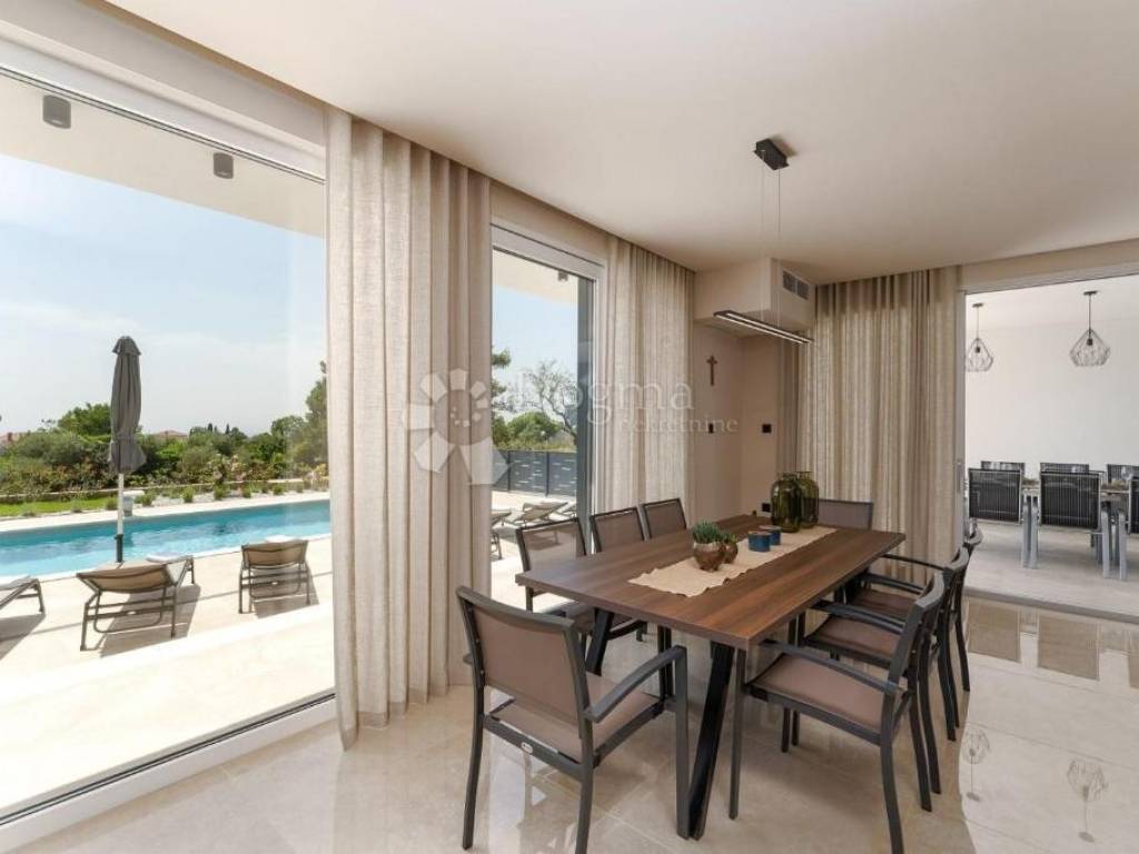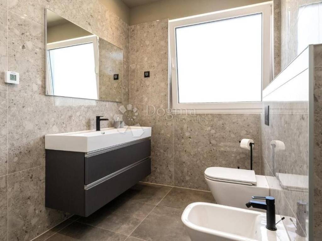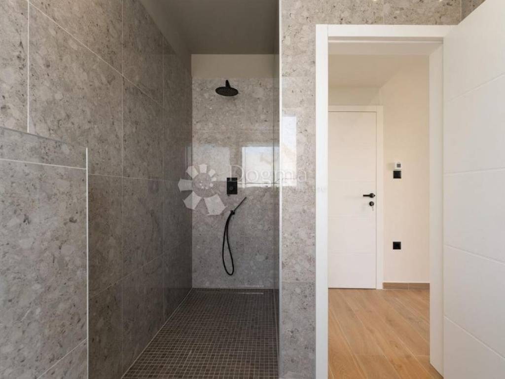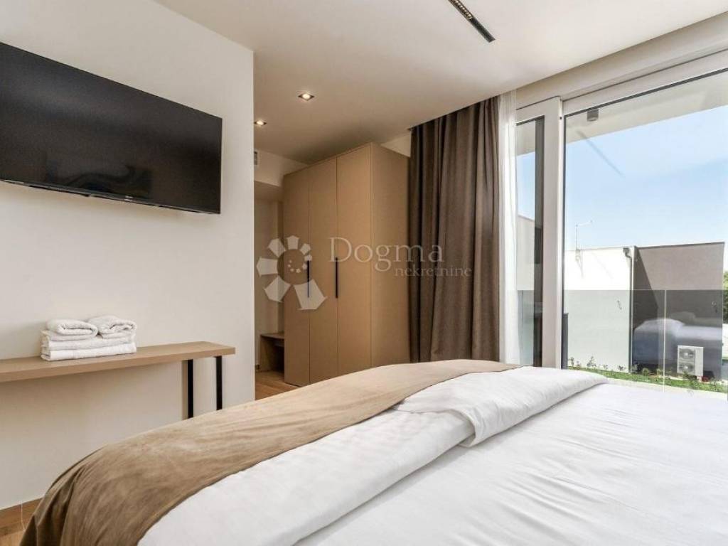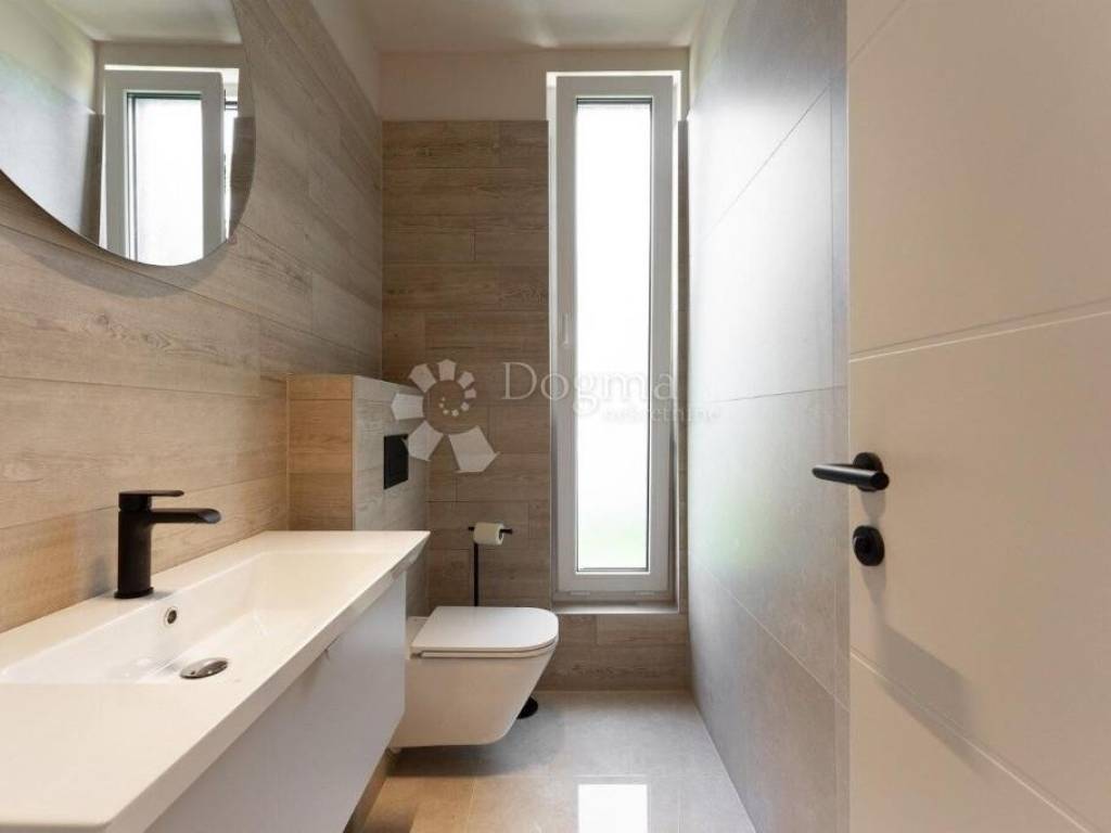 The ground floor of the villa consists of a spacious living room, kitchen and dining room decorated according to the open space concept, a bathroom, a storage room and a separate room that serves as a wellness oasis with a sauna and jacuzzi, with an exit to the garden and pool.