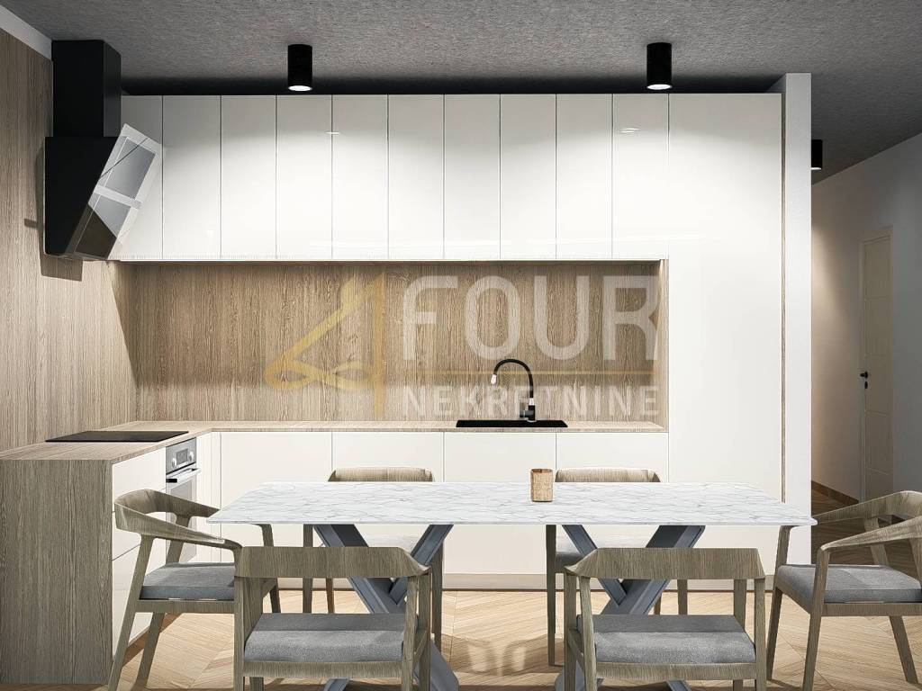 The complex includes a shared pool, underground garage, and an elevator that leads from the garage to the apartment, providing maximum comfort. The apartments are equipped with ventilated facade that combines modern energy efficiency and timeless aesthetics. There is high-quality external aluminum joinery Wicona with integrated alarm system, security doors, video surveillance, and a smart home system that allows control of blinds and lighting. The most advanced heating system and hot water preparation through a heat pump ensure high energy efficiency, while underfloor heating provides even warmth in all rooms. Ducted air conditioning units discreetly provide cooling and optimal air circulation. The interior features top-quality wooden floors and premium tiles in bathrooms and common areas.