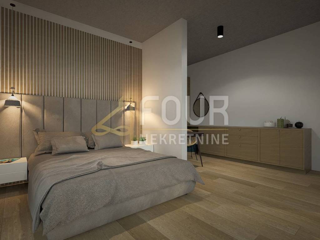 In Ičići, just a few minutes' walk from the sea, an exclusive apartment is located that represents the pinnacle of modern living on the Kvarner. It is a luxury new building whose completion is planned for spring 2027, within a small residential complex with a total of seven top-quality apartments, a shared pool, and an underground garage.