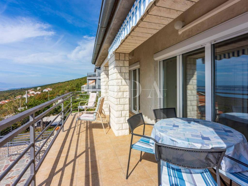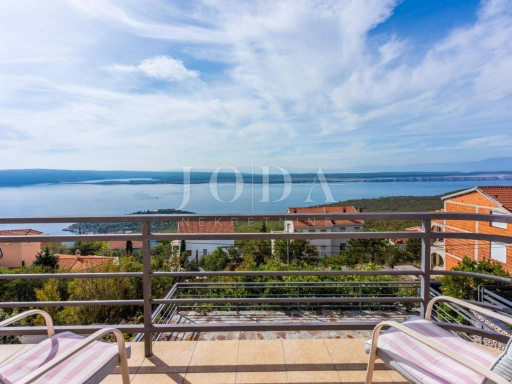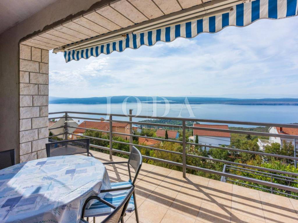 A house for sale in a quiet part of Dramalj, ideal for permanent residence or tourist rental. The house is located on a south-facing slope, offering a beautiful panoramic view of the sea, and covers a total living area of 138.04 m2. It consists of a ground floor and first floor, with an additional balcony of 19.22 m2 and a spacious terrace of 73.36 m2 that offers the possibility of building a swimming pool.