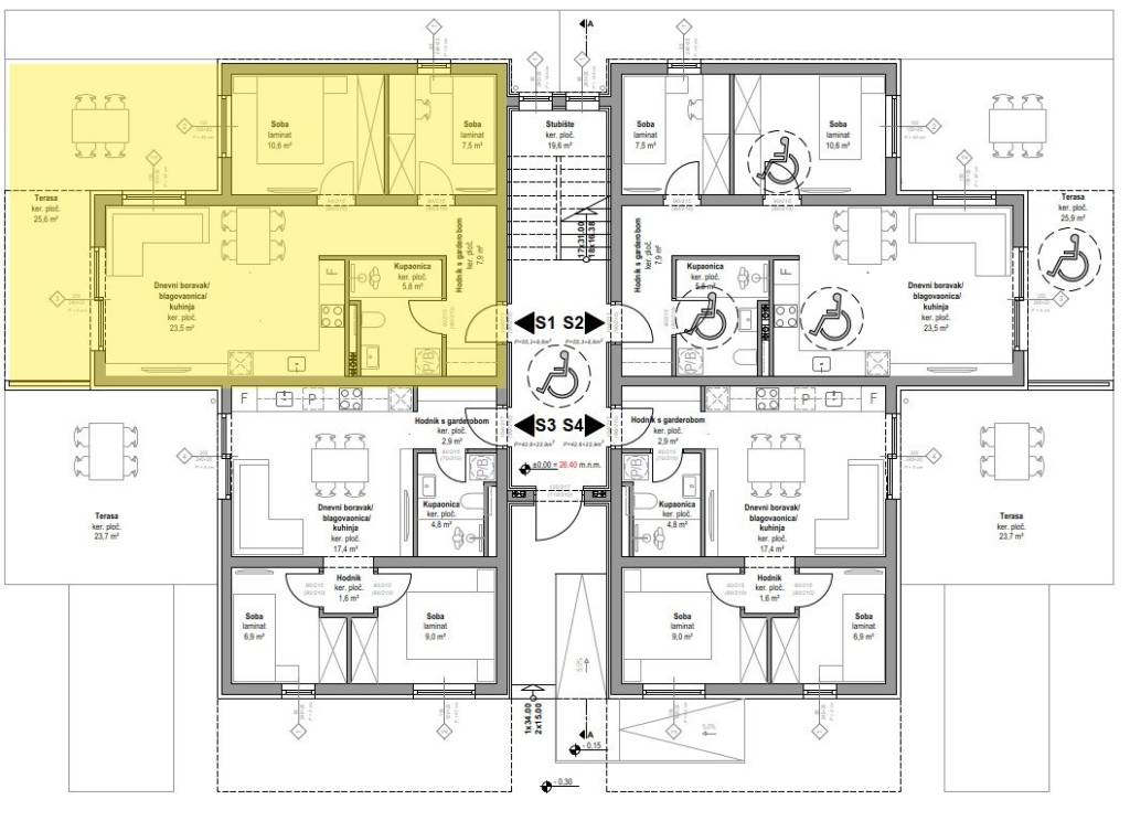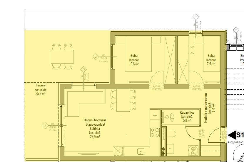 Vodicama, dans un immeuble en prévente / phase de réservation, nous proposons à la vente un appartement de deux pièces situé au rez-de-chaussée d’un immeuble résidentiel en projet de construction. Le début prévu des travaux est en avril 2026, et l’emménagement est prévu pour l’été 2027. L’appartement portant la référence S1, d’une surface totale de 81,69 m2, se compose de :