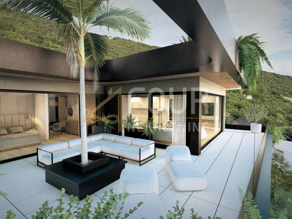 It is a luxury new construction project scheduled for completion in the spring of 2027, within a small residential complex with a total of seven high-end apartments, a shared pool, and an underground garage.