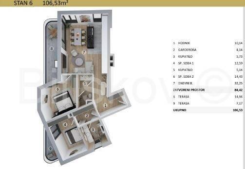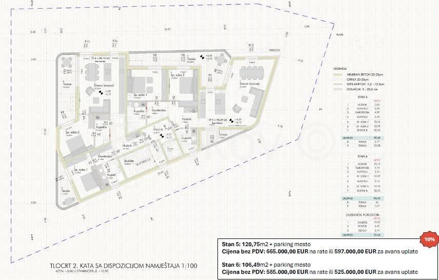 APARTMENT NO. 6: 106.49 m + parking space Price (excl. VAT): 585,000 in instalments or 525,000 for advance payment.