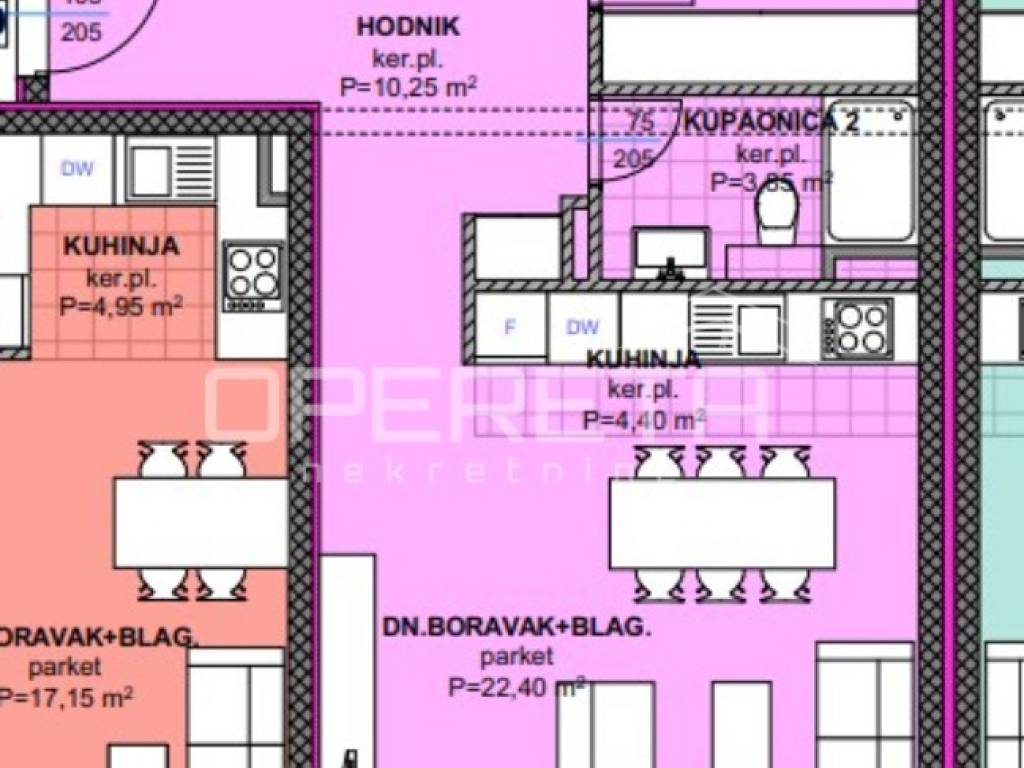 The building was built to higher standards, with reinforced concrete construction, PVC-aluminum joinery, underfloor heating, electric roller shutters, security doors and an intercom. All apartments are air-conditioned, and future owners are allowed to participate in the selection of finishing materials such as ceramics, parquet and bathroom equipment.