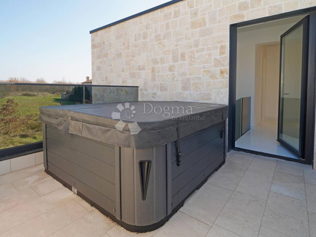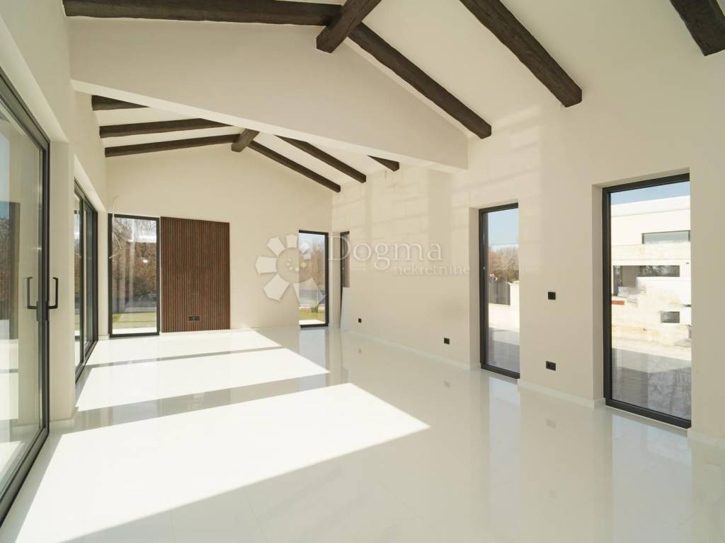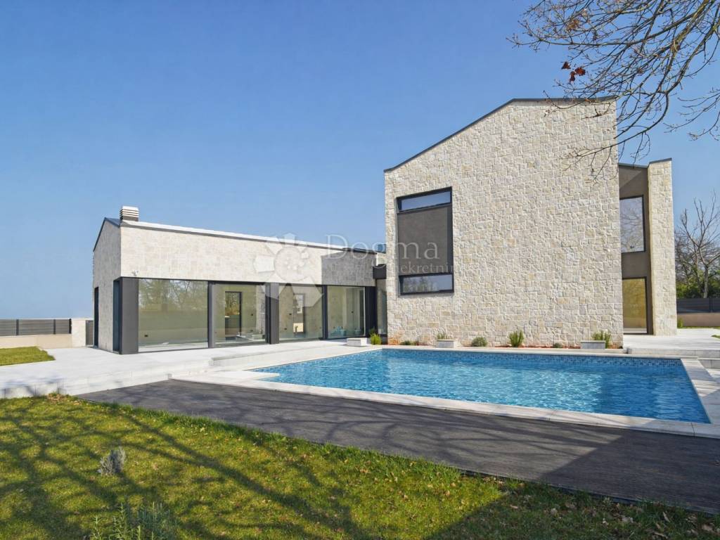Located in a peaceful and green residential area near Poreč, this modern designer villa with a swimming pool offers a total living area of 207 m. The property is situated on the edge of a quiet neighborhood, providing the perfect balance between privacy and proximity to the town center. All essential amenities are within easy reach, while the location ensures tranquility away from city noise. Shops are only 2 km away, and beautiful beaches and the sea are just 5 km from the property.