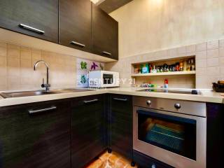 L’intérieur comprend une cuisine équipée d’appareils électroménagers, un lave-vaisselle, une télévision, un lit et un bureau, rendant l’appartement extrêmement pratique pour la vie quotidienne ou comme opportunité d’investissement. Le chauffage et la climatisation fonctionnent à l’électricité, assurant une température agréable toute l’année.