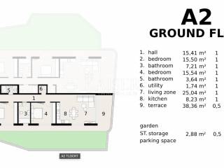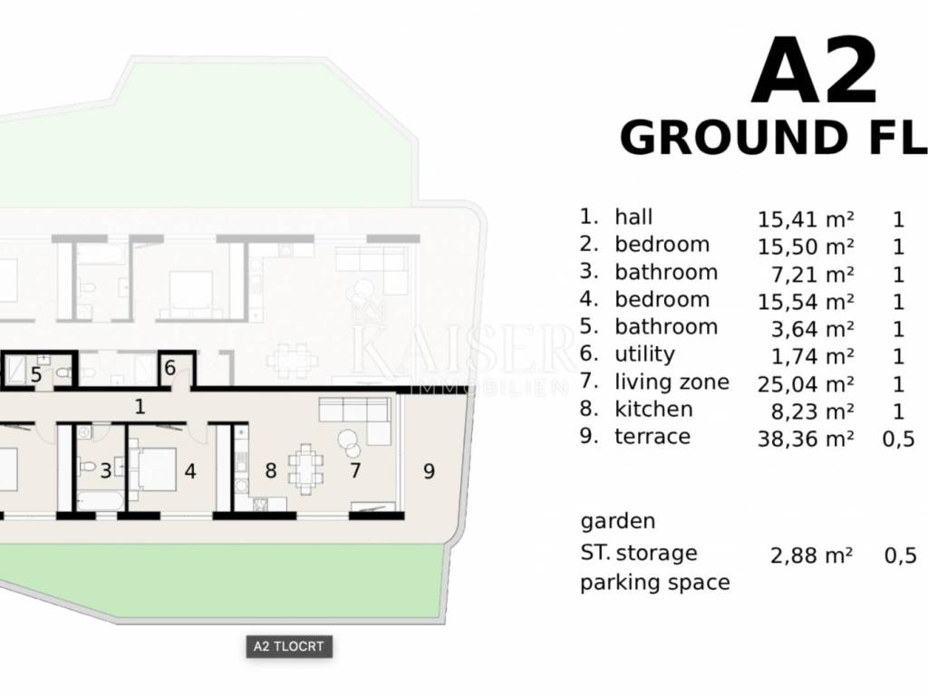 Imagine life in the heart of the prestigious Opatija Riviera, where everyday life turns into peace and relaxation by the sea. Kaiser Immobilien presents A2 – a luxurious three-bedroom apartment on the ground floor of a new, exclusive complex of only 7 apartments, with an underground garage, a shared pool and a private, quiet location just a few steps from the sea.