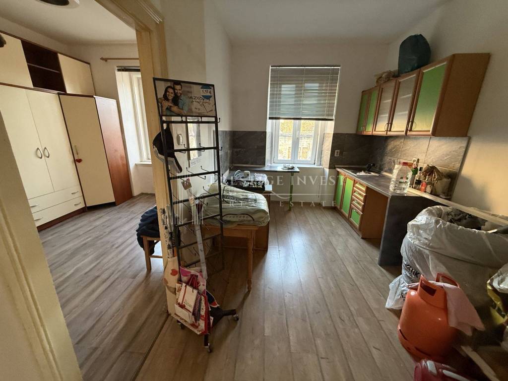 This is an old building and the apartment needs complete renovation, which allows the new owner to decorate it according to their own wishes and maximize the potential of the location.