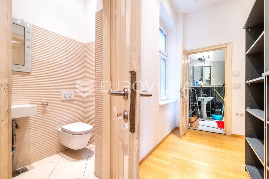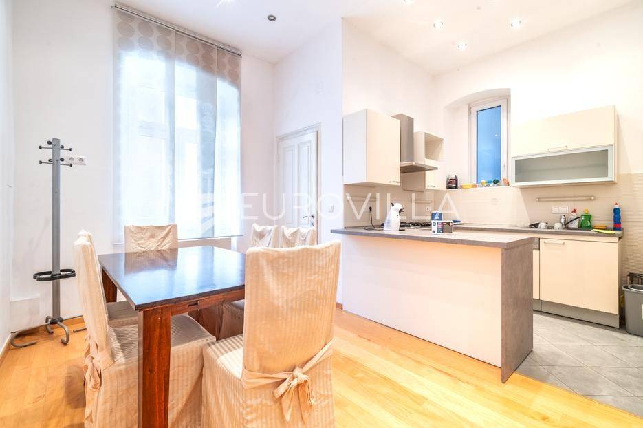 Zagreb, Centar, dobro održavan građanski stan površine 133 m2, smješten na 1. katu uglovnice. Stanu pripada i 80 m2 na tavanu.prozračan stan odiše stilom, kvalitetom i udobnošću.Sastoji se od tri velike spavaće sobe, prostrane blagovaonice, kuhinje, kupaonice, odvojenog WC-a, djevojačke sobe, lođe i velikog hodnika. Jednostavnom pregradom moguće je formirati dodatnu spavaću sobu.Opremljen je DanKüchen kuhinjom po mjeri, Miele aparatima, Villeroy & Boch sanitarijama i novim parketima. Posebna prednost je walk-in garderoba duga 5 metara, koja osigurava urednost i profinjen izgled prostora.Klimatizirane sve prostorije, etažno plinsko grijanje, nove instalacije, Radson radijatori, PVC stolarija, troslojna stakla, aluminijske rolete, visina stropa 3,25 m u kuhinji, blagovaonici i hodniku, a u sobama 3,90 m.Ugodan i svijetao stan orijentiran na sjevernu i južnu stranu, dok je loggia iz dnevnog boravka orijentirana na zapad. Betonska deka u hodniku, kuhinji, blagovaonici i kupaonici, a na podu ispod salonskih soba su grede.Uz stan dolazi i šupa, a u cijenu je uključeno vlasništvo 90 m² tavana (ukupno 210 m² površine, visine preko 7 m) s povučenim instalacijama - idealna mogućnost za uređenje dodatnog stana ili ateljea.Nalazi se na izvrsnoj lokaciji, u blizini Cvjetnog trga i svih sadržaja koje nudi strogi centar grada - trgovine, restorani, kulturne institucije i javni prijevoz.Za sve ostale upite nas slobodno kontaktirajte.... Više na eurovilla.hr, ID: 239759