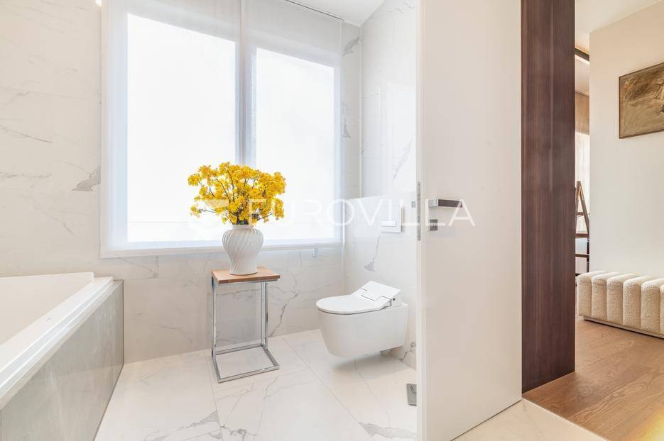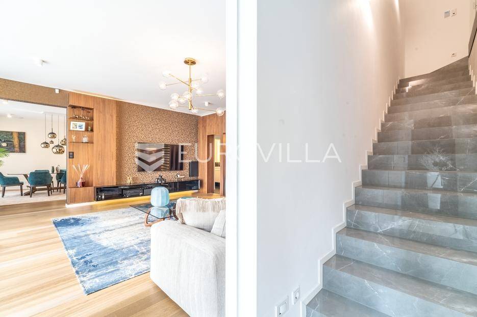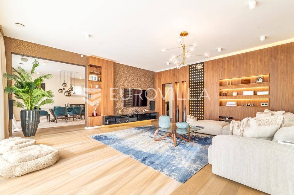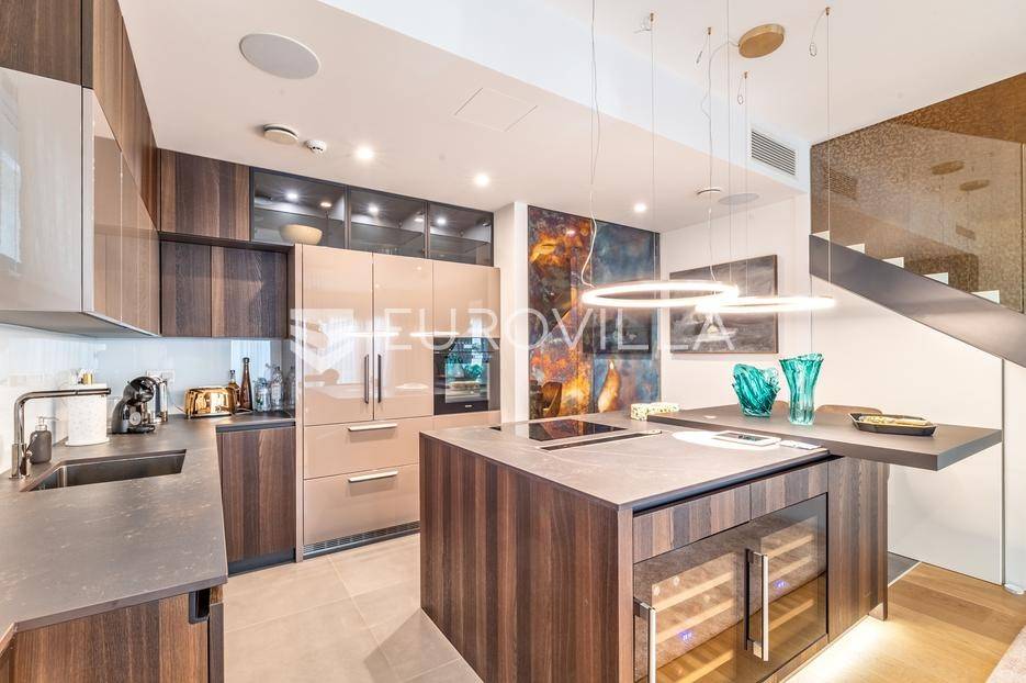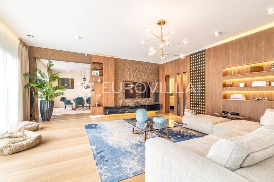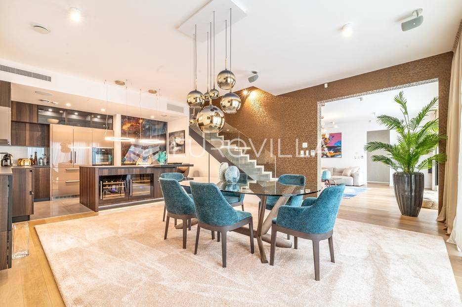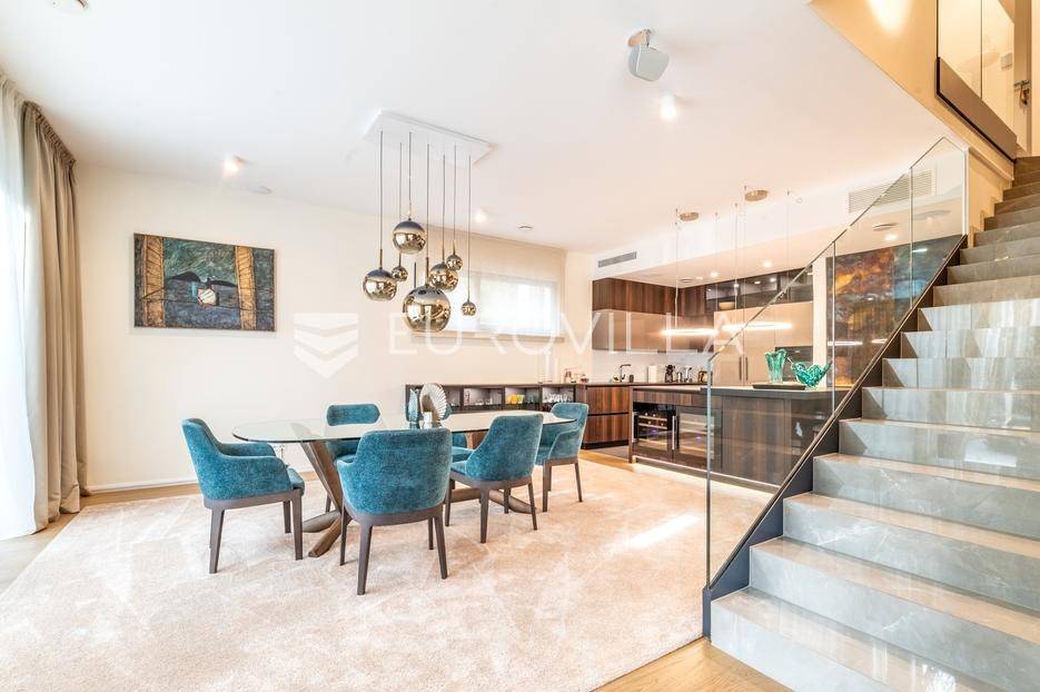 Maksimir - jedan od najljepših i najluksuznijih stanova u Zagrebu, smješten u izuzetno kvalitetnoj novoizgrađenoj urbanoj vili sa samo 2 stana. Ovaj prostrani četverosobni stan, s ukupnom neto površinom od 303 m², prostire se na dvije etaže i predstavlja savršen spoj elegancije, funkcionalnosti i modernih tehnologija.Zatvorene površine 220 m2, terasa 133 m² (33,42), vrt 230 m² (23), dvije garaže 33 m² (24.5) te dva parkirna mjesta 27 m² (6,76).Donja etaža nudi prostrani dnevni boravak, kuhinju s blagovaonicom, garderobu, wc, vešeraj, i master spavaću sobu s privatnom kupaonicom.Gornja etaža obuhvaća dvije elegantne spavaće sobe s vlastitim kupaonicama, pružajući savršen prostor za privatnost i opuštanje.Interijer stana u potpunosti je opremljen dizajnerskim namještajem, a kuhinja s vrhunskim aparatima Miele i Liebherr nudi funkcionalnost i sofisticiranost. U vrtu se nalazi vanjska ljetna kuhinja i 2 jacuzzia idealna za uživanje u mirnom okruženju.Opremljen je najsuvremenijim protuprovalnim sustavom, uz mogućnost 24-satnog nadzora. Smart home sustav omogućuje upravljanje rasvjetom, grijanjem, hlađenjem, ventilacijom, kamerama, protuprovalnim sustavom i roletama. Sustav stropnog, zidnog i podnog grijanja te hlađenja omogućuje maksimalnu udobnost, dok sustav rekuperacije zraka osigurava svjež zrak kroz cijeli stan. Dodatne karakteristike uključuju centralni usisavač, omekšivač vode, alarm i integrirani audio sustav.Ovaj stan predstavlja savršen odabir za one koji traže luksuz, sigurnost i udobnost u jednom od najatraktivnijih dijelova Zagreba.Za više informacija stojimo Vam uvijek na raspolaganju.... Više na eurovilla.hr, ID: 281684