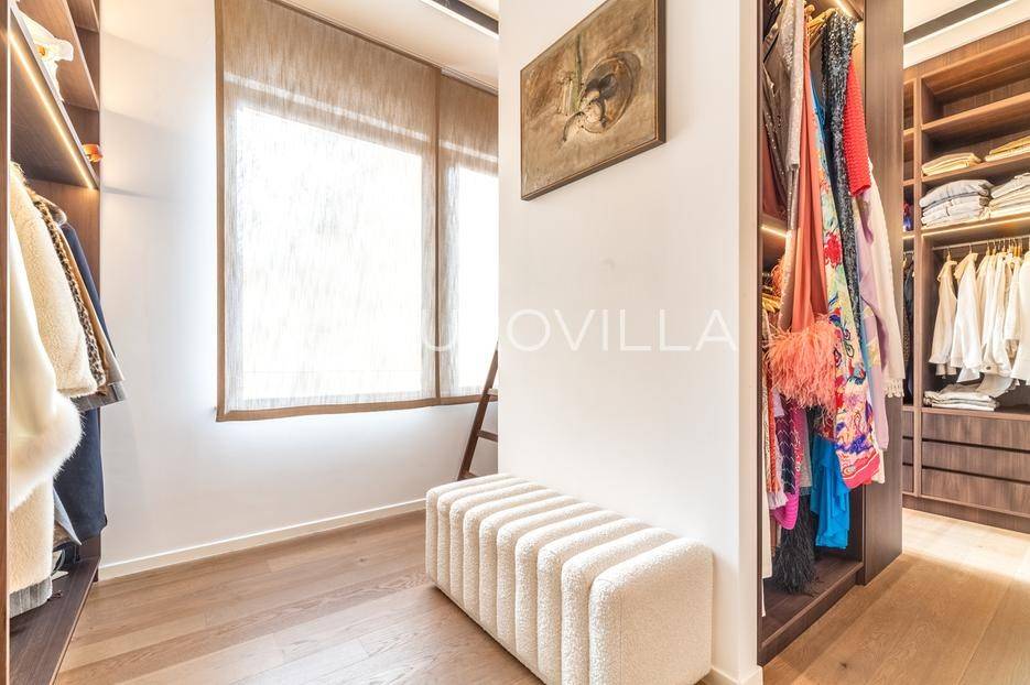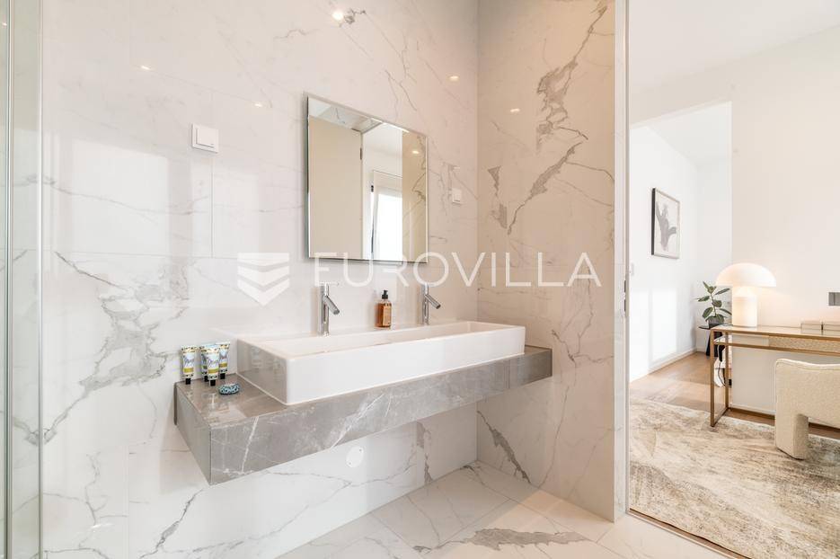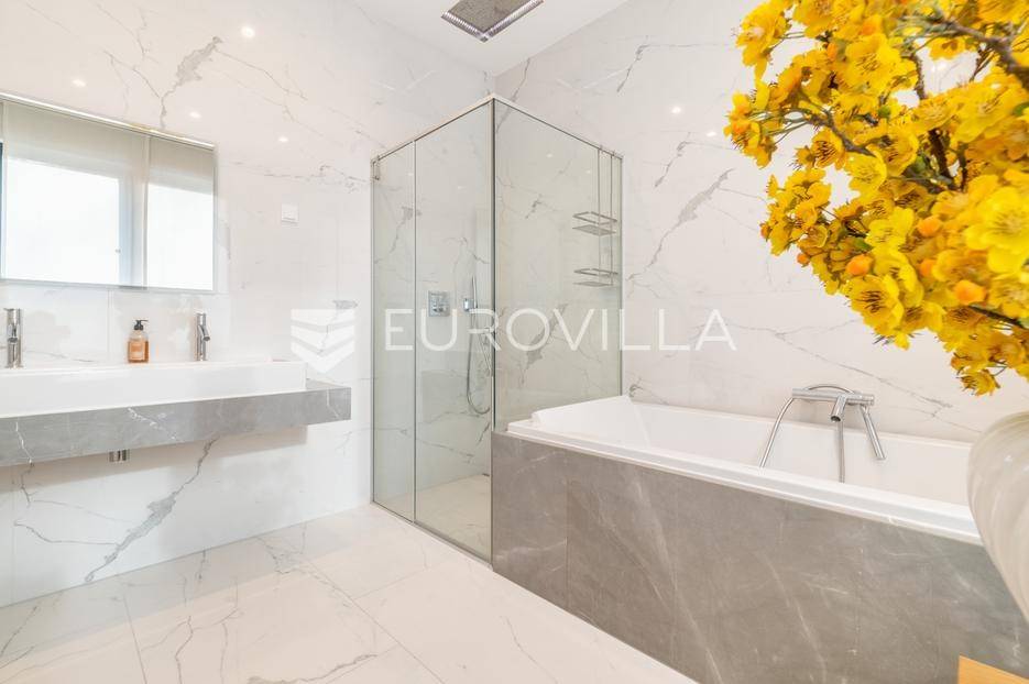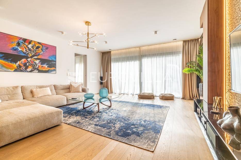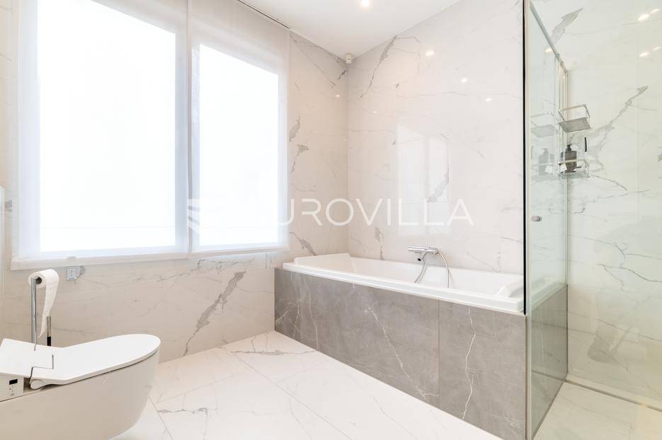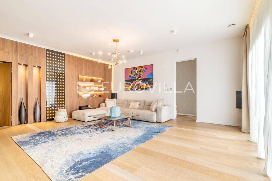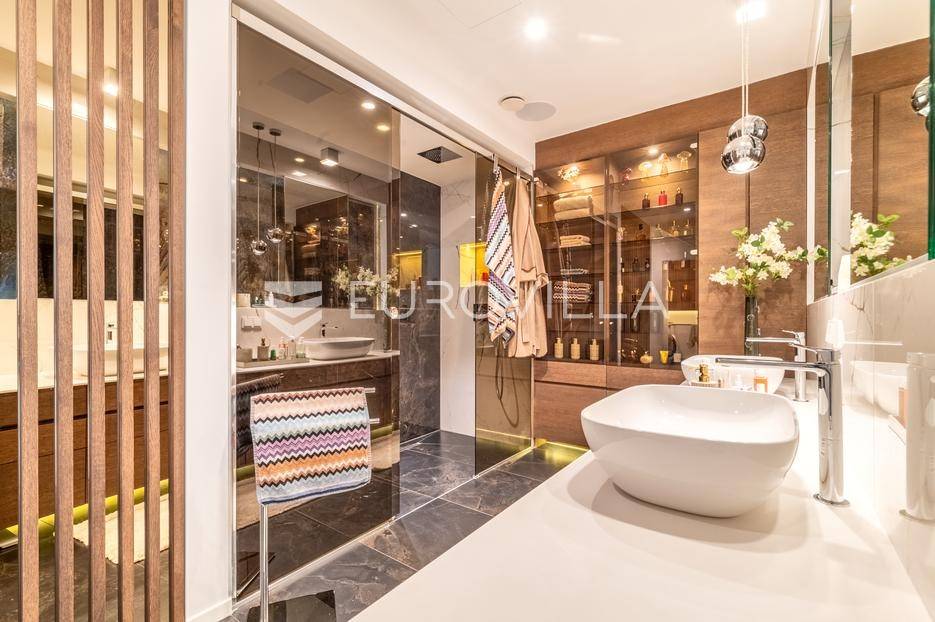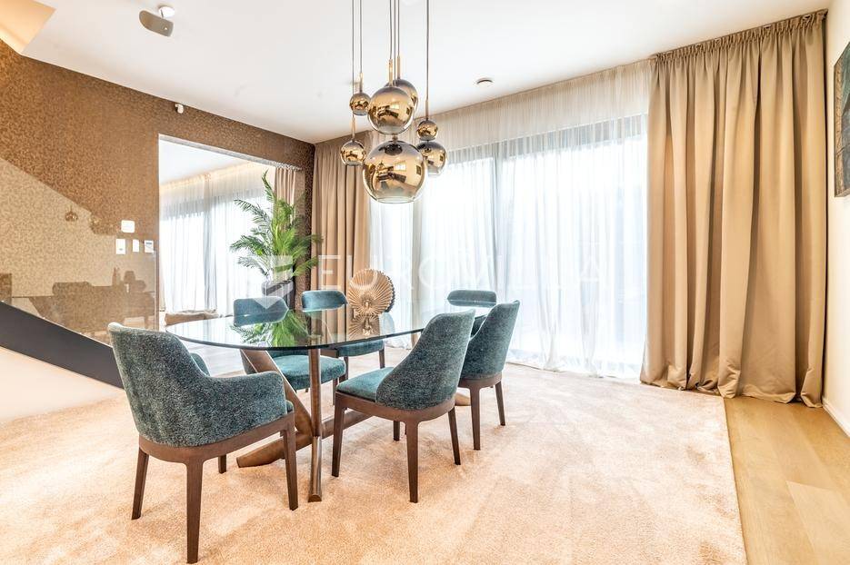 Maksimir - jedan od najljepših i najluksuznijih stanova u Zagrebu, smješten u izuzetno kvalitetnoj novoizgrađenoj urbanoj vili sa samo 2 stana. Ovaj prostrani četverosobni stan, s ukupnom neto površinom od 303 m², prostire se na dvije etaže i predstavlja savršen spoj elegancije, funkcionalnosti i modernih tehnologija.Zatvorene površine 220 m2, terasa 133 m² (33,42), vrt 230 m² (23), dvije garaže 33 m² (24.5) te dva parkirna mjesta 27 m² (6,76).Donja etaža nudi prostrani dnevni boravak, kuhinju s blagovaonicom, garderobu, wc, vešeraj, i master spavaću sobu s privatnom kupaonicom.Gornja etaža obuhvaća dvije elegantne spavaće sobe s vlastitim kupaonicama, pružajući savršen prostor za privatnost i opuštanje.Interijer stana u potpunosti je opremljen dizajnerskim namještajem, a kuhinja s vrhunskim aparatima Miele i Liebherr nudi funkcionalnost i sofisticiranost. U vrtu se nalazi vanjska ljetna kuhinja i 2 jacuzzia idealna za uživanje u mirnom okruženju.Opremljen je najsuvremenijim protuprovalnim sustavom, uz mogućnost 24-satnog nadzora. Smart home sustav omogućuje upravljanje rasvjetom, grijanjem, hlađenjem, ventilacijom, kamerama, protuprovalnim sustavom i roletama. Sustav stropnog, zidnog i podnog grijanja te hlađenja omogućuje maksimalnu udobnost, dok sustav rekuperacije zraka osigurava svjež zrak kroz cijeli stan. Dodatne karakteristike uključuju centralni usisavač, omekšivač vode, alarm i integrirani audio sustav.Ovaj stan predstavlja savršen odabir za one koji traže luksuz, sigurnost i udobnost u jednom od najatraktivnijih dijelova Zagreba.Za više informacija stojimo Vam uvijek na raspolaganju.... Više na eurovilla.hr, ID: 281684