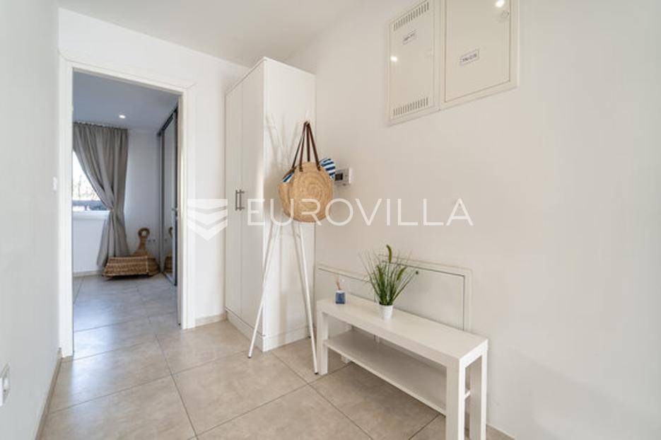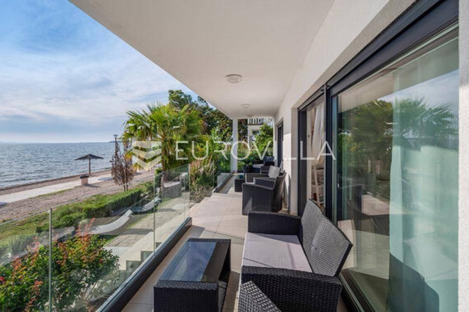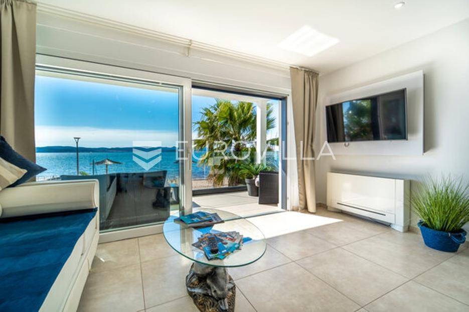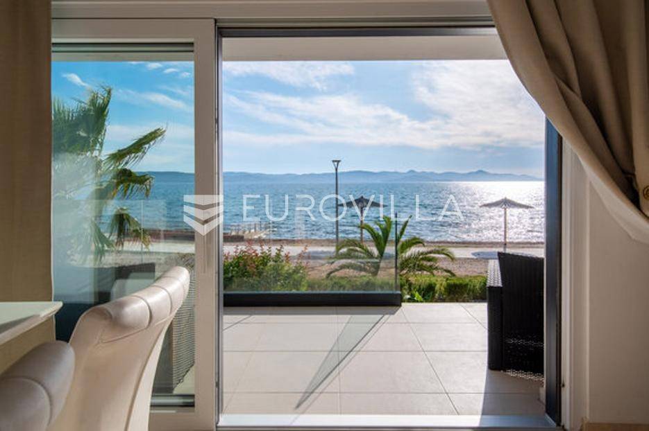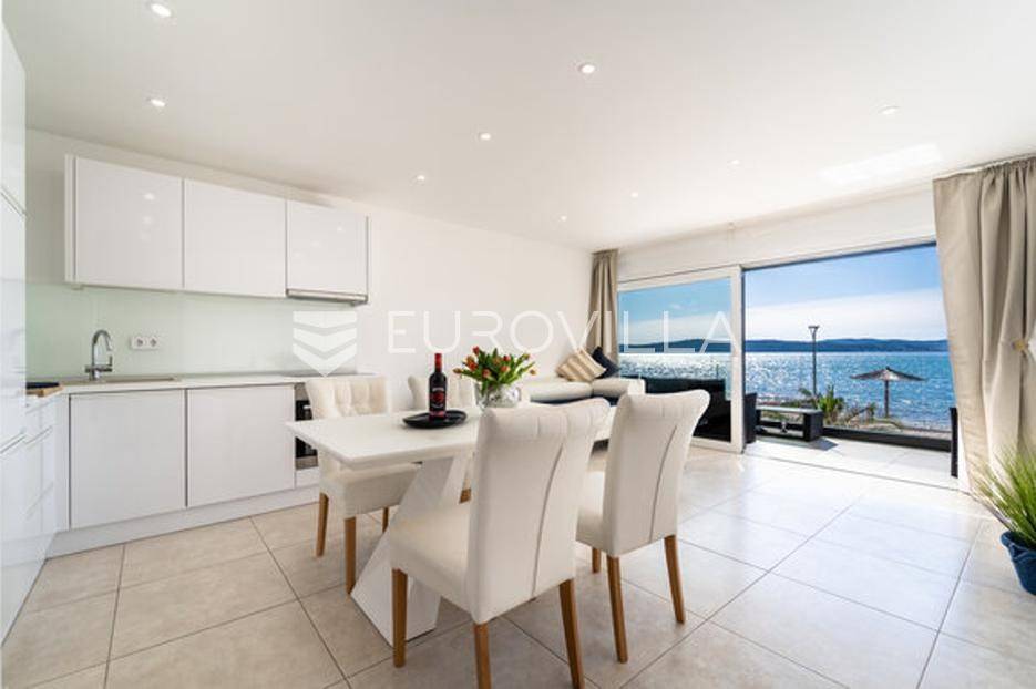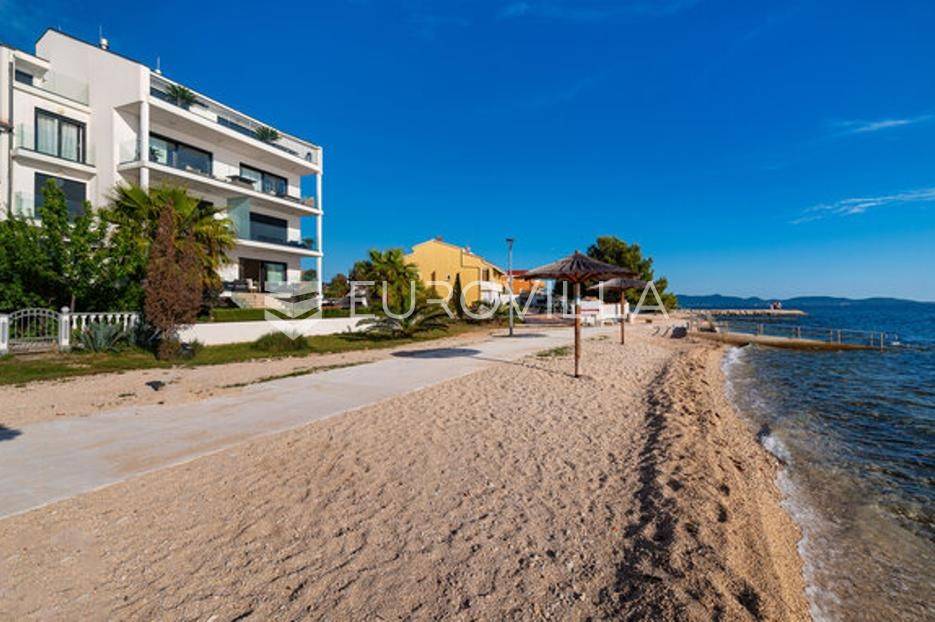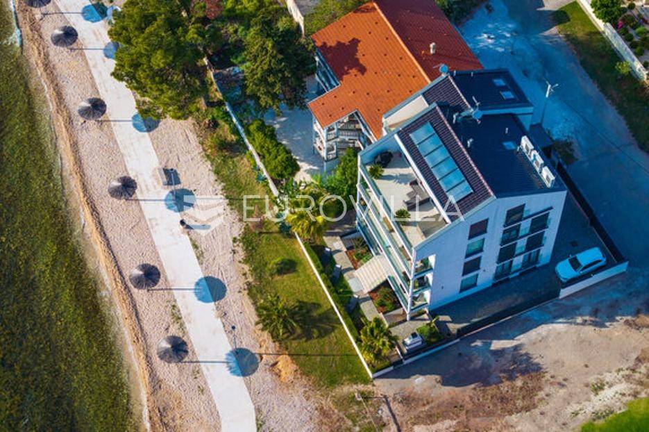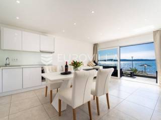 Zadar, Bibinje, dvosoban stan na nevjerojatnoj lokaciji, svega par metara od mora i prekrasne plaže.Ova iznimna nekretnina može se pohvaliti neometanim pogledom na more, otoke i horizont, te visokokvalitetnim materijalima u cijelom stanu i zgradi nudeći ekskluzivno i mirno životno iskustvo.Stan je smješten u mirnom području, te pruža savršen bijeg od gužve i buke, s predivnom plažom udaljenom tek par koraka od terase na kojoj možete uživati u dnevnom pogledu ili večernjem zalasku sunca.Stan je ukupne površine 129,30 m2, i nalazi se u prizemlju zgrade s ukupno 6 stanova.Sastoji se od ulaznog hodnika, namještene kuhinje, blagovaone i dnevnog boravka s izlaskom na terasu kroz veliku staklenu stijenu koja omogućava potpunu svjetlinu tijekom cijelog dana i neometan predivan pogled. U stanu su još i dvije spavaće sobe s pripadajućim kupaonicama. Arhitektonski dizajn besprijekorno spaja moderne pogodnosti s luksuznom završnom obradom, stvarajući primamljivu atmosferu koja je istovremeno funkcionalna i elegantna.Grijanje je izvedeno kao podno kroz cijeli stan. U dnevnom boravku je ugrađen i komin, koji zimi daje toplinu i predivan ugođaj, a hlađenje se odvija klima uređajima koji se nalaze u spavaćim sobama.Zbog svoje iznimne lokacije, nekretnina je savršena za obiteljski miran život ili za turistički najam.U blizini se nalaze svi potrebni sadržaji za ugodan život poput dućana, tržnice, kafića i restorana.Za sve dodatne upita stojimo na raspolaganju.... Više na eurovilla.hr, ID: 334252