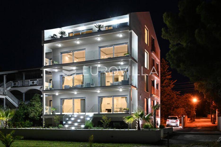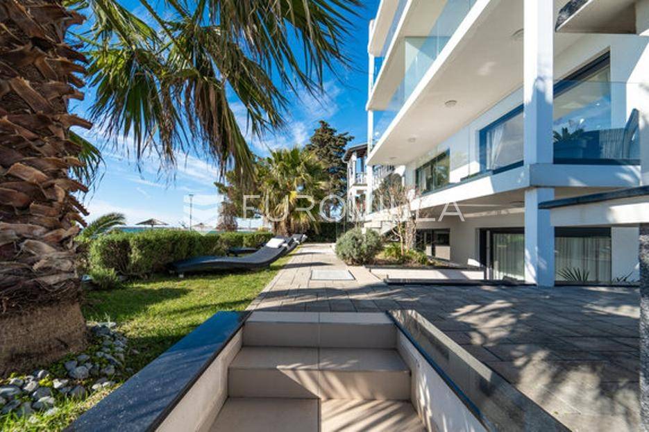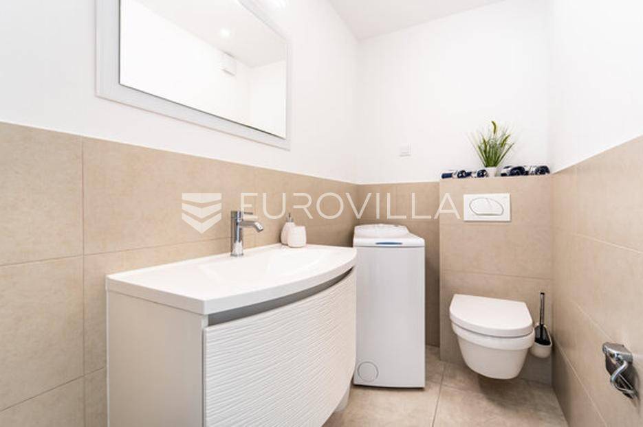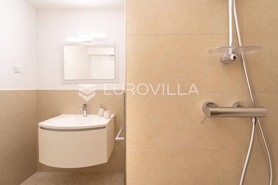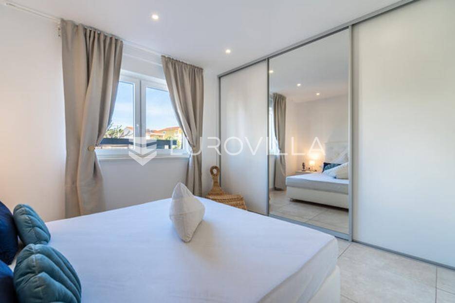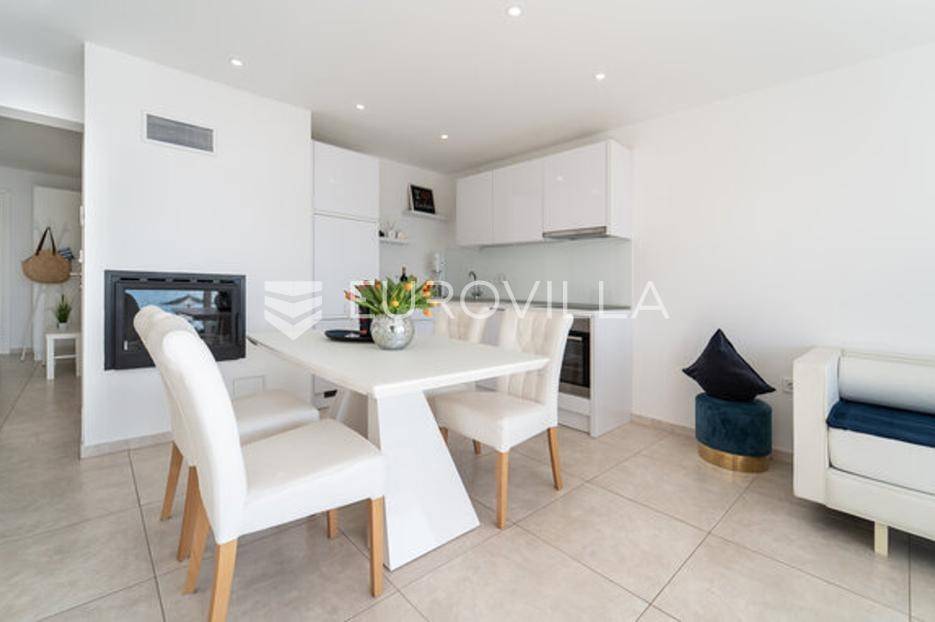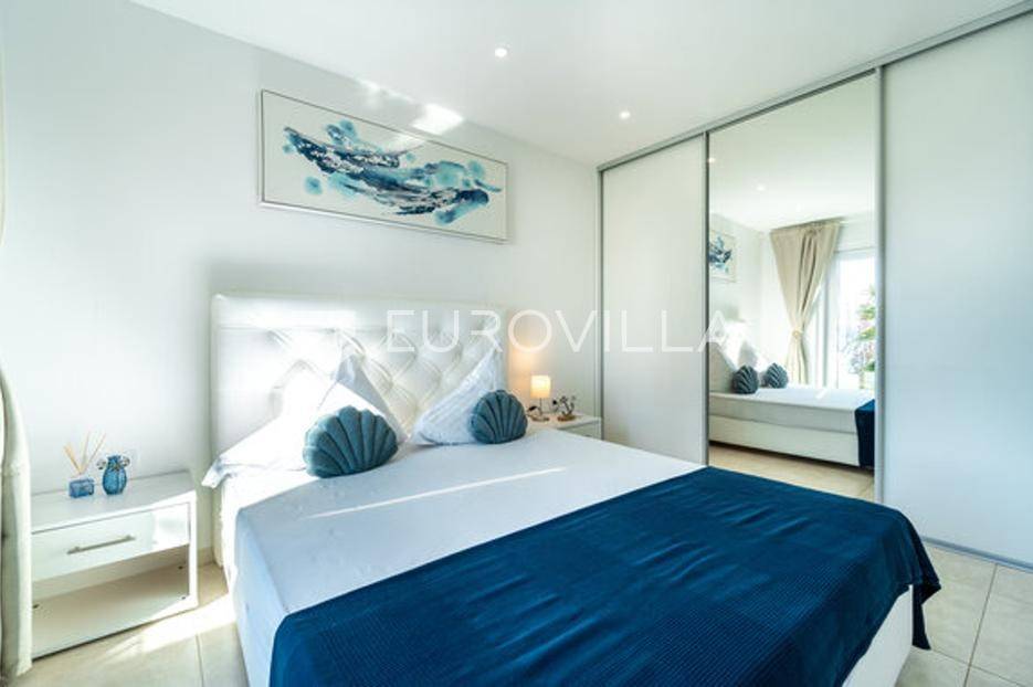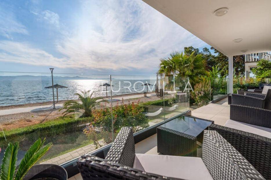 Zadar, Bibinje, dvosoban stan na nevjerojatnoj lokaciji, svega par metara od mora i prekrasne plaže.Ova iznimna nekretnina može se pohvaliti neometanim pogledom na more, otoke i horizont, te visokokvalitetnim materijalima u cijelom stanu i zgradi nudeći ekskluzivno i mirno životno iskustvo.Stan je smješten u mirnom području, te pruža savršen bijeg od gužve i buke, s predivnom plažom udaljenom tek par koraka od terase na kojoj možete uživati u dnevnom pogledu ili večernjem zalasku sunca.Stan je ukupne površine 129,30 m2, i nalazi se u prizemlju zgrade s ukupno 6 stanova.Sastoji se od ulaznog hodnika, namještene kuhinje, blagovaone i dnevnog boravka s izlaskom na terasu kroz veliku staklenu stijenu koja omogućava potpunu svjetlinu tijekom cijelog dana i neometan predivan pogled. U stanu su još i dvije spavaće sobe s pripadajućim kupaonicama. Arhitektonski dizajn besprijekorno spaja moderne pogodnosti s luksuznom završnom obradom, stvarajući primamljivu atmosferu koja je istovremeno funkcionalna i elegantna.Grijanje je izvedeno kao podno kroz cijeli stan. U dnevnom boravku je ugrađen i komin, koji zimi daje toplinu i predivan ugođaj, a hlađenje se odvija klima uređajima koji se nalaze u spavaćim sobama.Zbog svoje iznimne lokacije, nekretnina je savršena za obiteljski miran život ili za turistički najam.U blizini se nalaze svi potrebni sadržaji za ugodan život poput dućana, tržnice, kafića i restorana.Za sve dodatne upita stojimo na raspolaganju.... Više na eurovilla.hr, ID: 334252