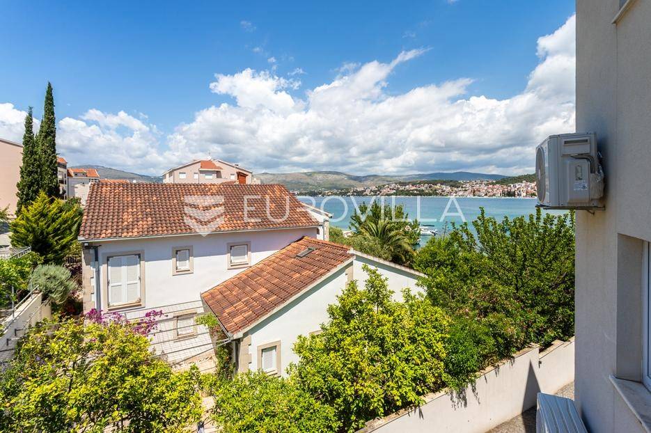 Čiovo, Okrug Gornji, na iznimnoj lokaciji - prvi red do mora, na drugoj etaži objekta, položen je komforan dvosoban stan spreman za useljenje. Objekt ima sve potrebne dozvole, a vlasništvo je uredno.Stan se sastoji od hodnika, kupaonice, wc-a, ostave, dvije spavaće sobe, kuhinje s blagovaonicom, te dnevnog boravka s izlazom na prostranu loggi-u ( 16, 38 m2 ) s pogledom na more. Površina zatvorenog stambenog dijela iznosi 89, 21 m2, dok je ukupna 101 m2.Uz stan je obavezna kupnja jednog vanjskog parkirnog mjesta smještenog uz objekt, po cijeni od 10 000, 00 eura.Mikrolokacija je odlična, u blizini svih potrebnih sadržaja - uređenih plaža, trgovina, kafića, restorana,….Za sva ostala pitanja, stojimo vam na raspolaganju.... Više na eurovilla.hr, ID: 343793