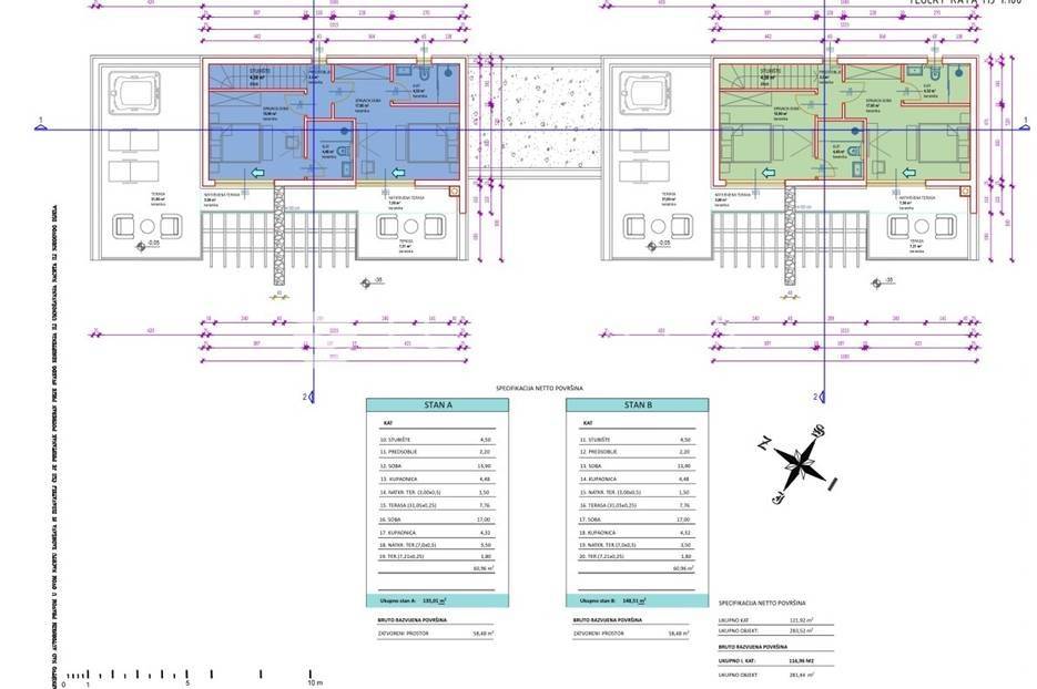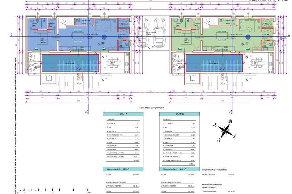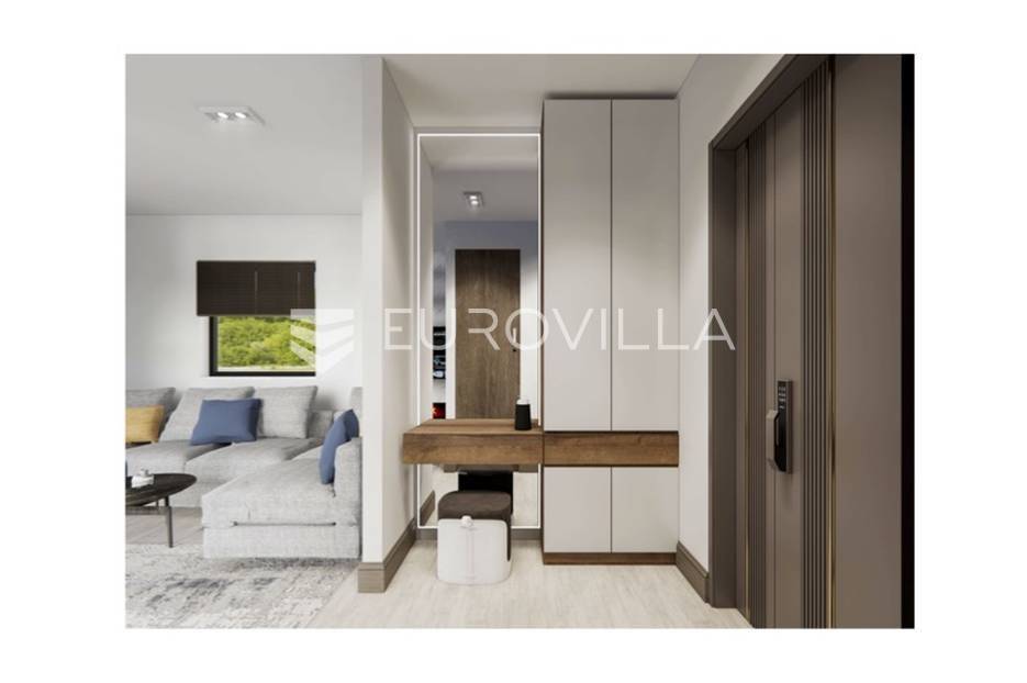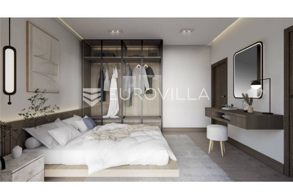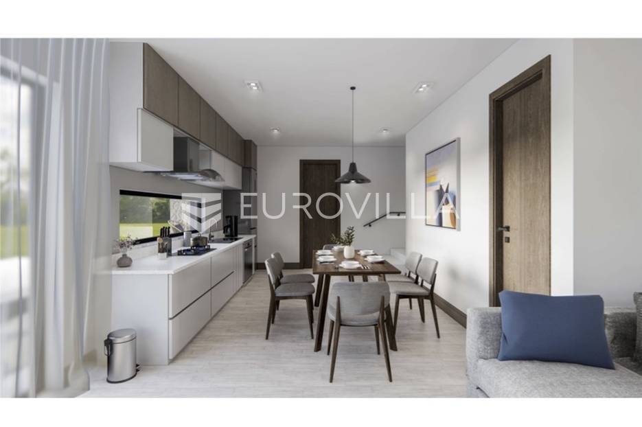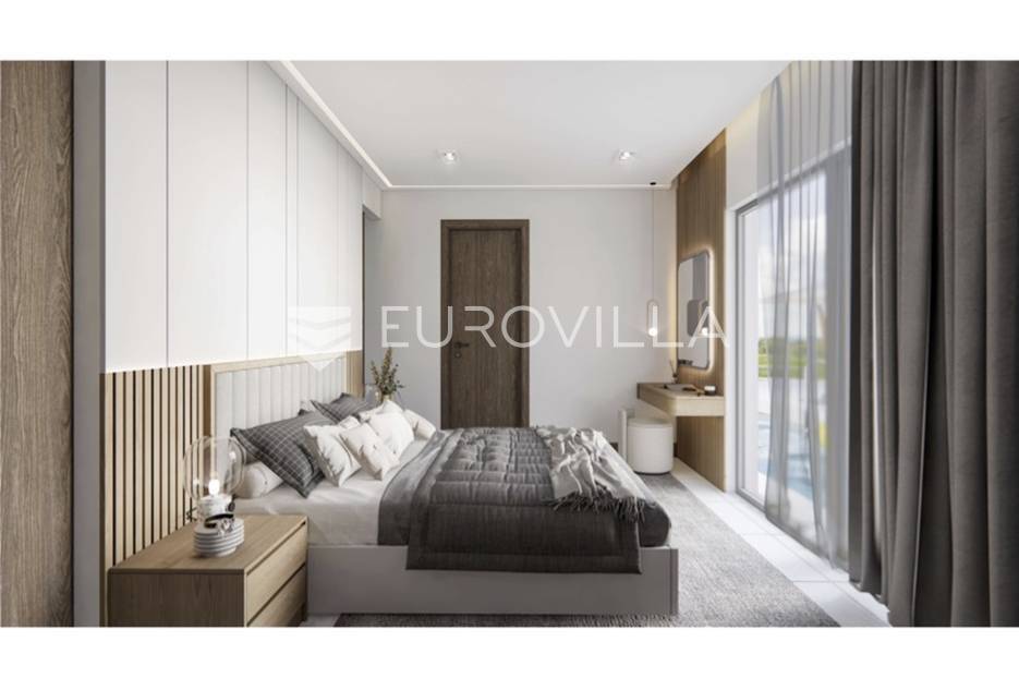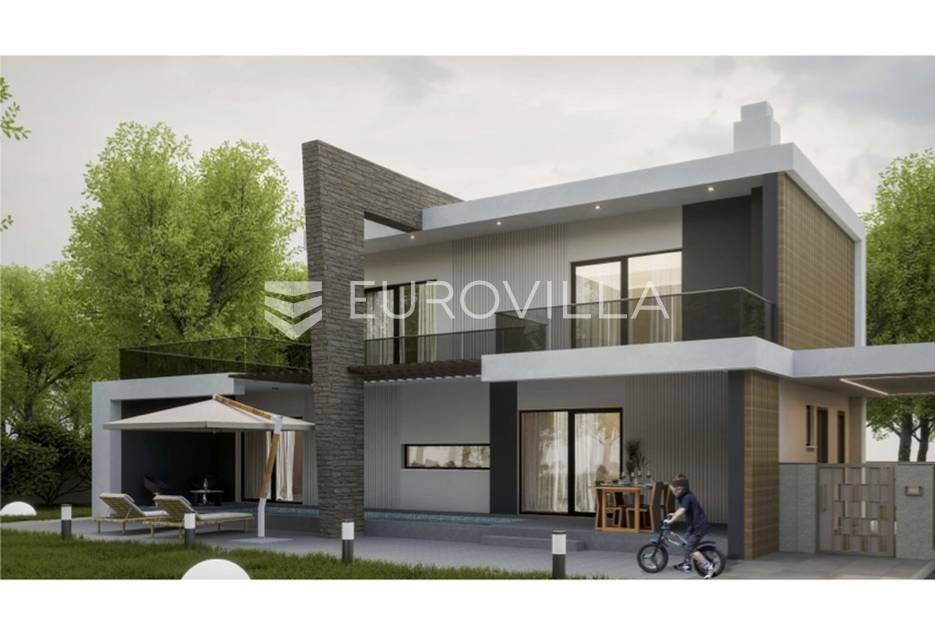 Otkrijte ovu izvanrednu modernu vilu u mirnom Mušaležu, na samo 5 km od Poreča i 2000 metara od mora. Novogradnja iz 2024. godine, s energetskim certifikatom A, idealan je dom za obitelj ili izvrsna investicija, nudeći savršen spoj luksuza, udobnosti i suvremenog dizajna.Vila se prostire na 135 m² stambenog prostora, inteligentno raspoređenog na dvije etaže, na prostranoj okućnici od 550 m². Eksterijer je pažljivo osmišljen s predivnim vrtom, prostranom terasom i sunčalištem uz elegantan bazen, stvarajući privatnu oazu za opuštanje. Južna i zapadna orijentacija osigurava obilje prirodnog svjetla.Prizemlje obuhvaća prostrani dnevni boravak koji se spaja s vanjskim prostorom kroz velike staklene stijene od aluminijske stolarije, s direktnim izlazom na terasu, sunčalište i bazen. Moderna kuhinja opremljena je vrhunskom talijanskom keramikom. Na istoj etaži nalazi se gostinjski toalet te jedna spavaća soba.Na katu su dvije prostrane spavaće sobe, svaka s vlastitom luksuznom kupaonicom, jamčeći maksimalnu udobnost. Iz svake sobe omogućen je izlaz na terasu s očaravajućim pogledom na bazen i prirodu. Interijer je obogaćen visokokvalitetnim parketom, modernim klima uređajima i podnim grijanjem na struju.Kao pametna kuća (smart home sustav) s dodatnom ostavom, ova vila nudi funkcionalnost i najviši standard življenja. Blizina Poreča i mora čini je izuzetno atraktivnom prilikom za one koji traže savršen spoj modernog luksuza i opuštajućeg mediteranskog načina života.... Više na eurovilla.hr, ID: 348199