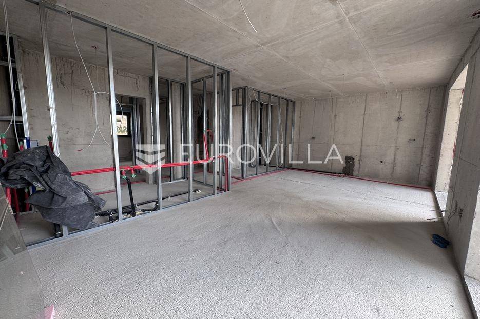 Split, Pazdigrad, moderan i komforan stan u visokom prizemlju s velikim vrtom.Stan se sastoji od hodnika, dvije spavaće sobe, kupaonice, toaleta, ostave, prostranog dnevnog boravka s kuhinjom i blagovaonicom te natkrivenih terasa i vrta na jugu i zapadu. Površina zatvorenog dijela stana iznosi 78,47 m2, a sveukupna obračunska površina stana je 91,29 m2.Uz stan je obavezna kupnja jednog parkirnog mjesta u garaži te jednog vanjskog parkirnog mjesta po cijeni od 35000 Eura za oba.Liftom je omogućena topla komunikacija stana s garažom.Predviđene su 3 klima jedinice, u sobama i dnevnom boravku, podno grijanje u kupaonicama, zatvori aluminij/troslojno staklo, visoki stropovi za osjećaj luksuza, velike klizne stijenke s izlazom na vanjski dio, video nadzor zgrade, električni punjač u garaži te ostale pogodnosti koje osiguravaju kvalitetu života.Planirani završetak zgrade je 08/2026, a useljenje po dobivanju potpune dokumentacije.Izvrsna lokacija za ugodan život, u blizini svih bitnih sadržaja kao što su škola, dućan, autobusna stanica, trgovački centar, kafić i ostalo.Kupac plaća porez na promet nekretnina. Plaćanje u fazama gradnje.Ostale informacije na upit.... Više na eurovilla.hr, ID: 458982