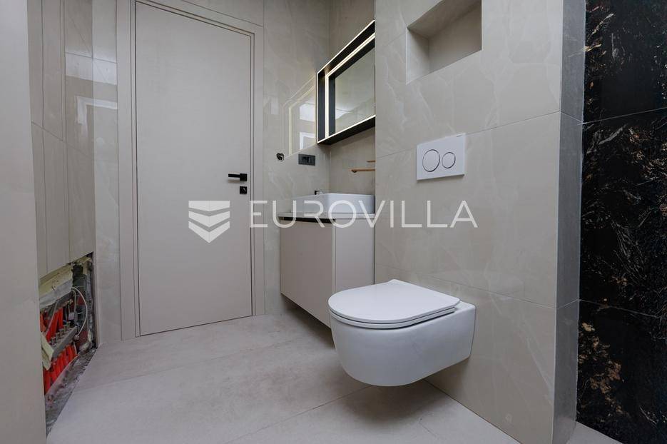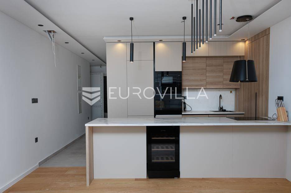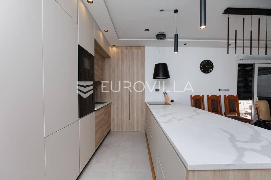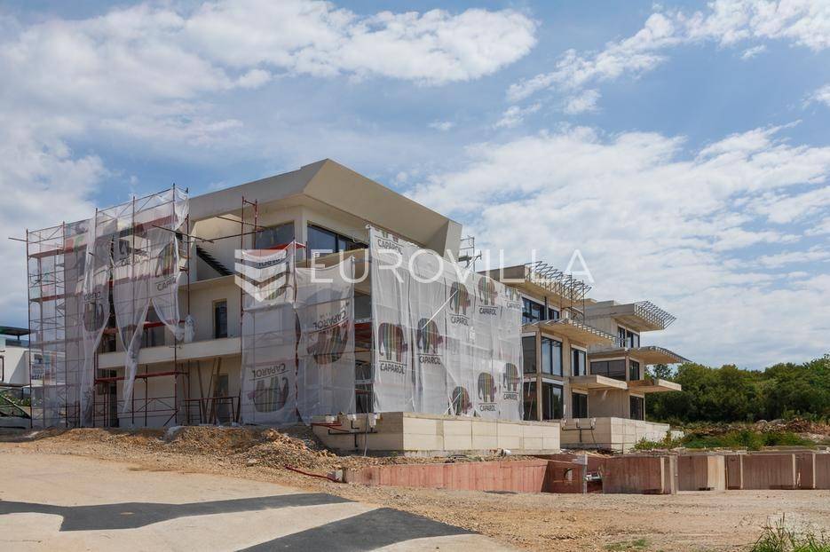 Otok Krk, Njivice, prodaje se dvoetažni stan 104.45m2 u novogradnji s bazenom i garažnim mjestom.Nalazi se u idealnoj mikro lokaciji u okruženju villa, obiteljskih kuća više klase, višestambenih zgrada više kategorije i na udaljenosti od mora samo 500 m.Dvoetažan stan, u prizemlju je dnevni dio, kupaonica, terasa, bazen i dio okućnice, dok se na katu nalaze spavaće sobe i kupaonica.Već iz prizemlja se more vidi djelomično a s terase na 1 katu se pruža panoramski pogled.... Više na eurovilla.hr, ID: 463203