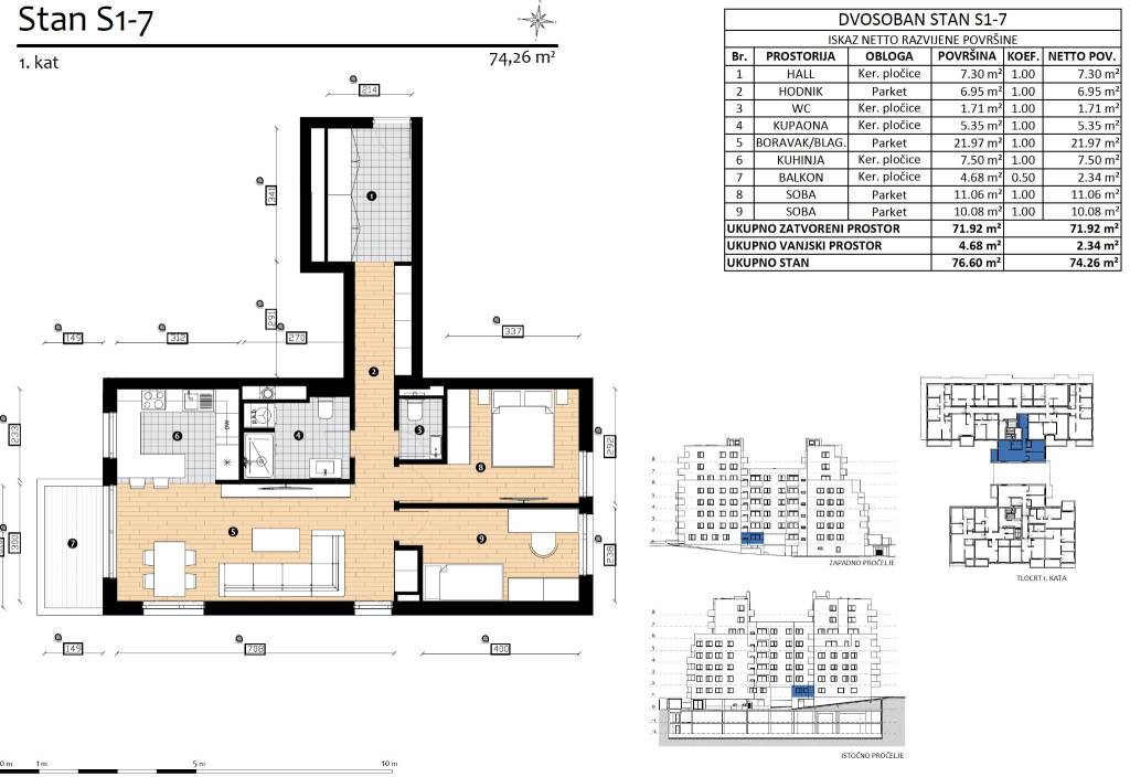 HERITAGE -Nova era stanovanja na TrešnjevciTrešnjevka, na atraktivnoj lokaciji gradi se zgrada s ukupno 110 stanova. Savršen spoj udobnosti i luksuza dostupan svima. Planirano useljenje- veljača 2027.Stan S1-7trosoban stan na prvom katu zatvorene površine 71,92 m2 i loggie 4,68 m2 (2,34) ukupne površine74,26 m2.Sastoji se od ulaznog hodnika, dnevnog boravka spojenog s blagovaonicom i kuhinjom, loggie, gostinjski toalet, kupaonice i dvije spavaće sobe.Obavezna kupnja garažnog parkirnog mjesta te mogućnost kupnje spremišta.Zgrada će biti izgrađena po visokim standardima:sustav ETICS, završni sloj silikatna žbuka proizvođača ROFIXtoplinska izolacija 15 cm mineralna vuna Rockwoolaluminijske vanjske klupčice u boji stolarijevanjska stolarija PVC s trostrukim IZO staklomtoplinski izolirane aluminijske električne roletekomarnicidizalo KONE za 13 osoba,moderna i luksuzna kabinavideonadzor ulaza u zgradu i garažuunutarnja stolarija visina 220 cm, skriveni panti, magnetska bravaulazna vrata protuprovalna i protudimna, zvučno izoliranapodovi sanitarne prostorije, loggie i kuhinje obloženo keramičkim pločicama I klase, podovi svih ostalih prostorija obloženi sa gotovim višeslojnim hrastovim parketom proizvođača Moparsva sanitarna oprema je visoke kvalitete poznatih svjetskih proizvođača (HANSGROHE, LAUFEN, IDEAL STANDARD)ugradbeni TECE vodokotlićigrijanje i priprema potrošne tople vode preko Vaillant ili Bosch kondenzacijskog plinskog bojlerapodno grijanje svih prostorijatermostati podnog grijanja u svim prostorijamainverter klima uređaj Samsung i ToshibaLokacija u blizini škole, vrtića, trgovina, javnog gradskog prijevoza.Za sva ostala pitanja stojimo Vam na raspolaganju... Više na eurovilla.hr, ID: 478820