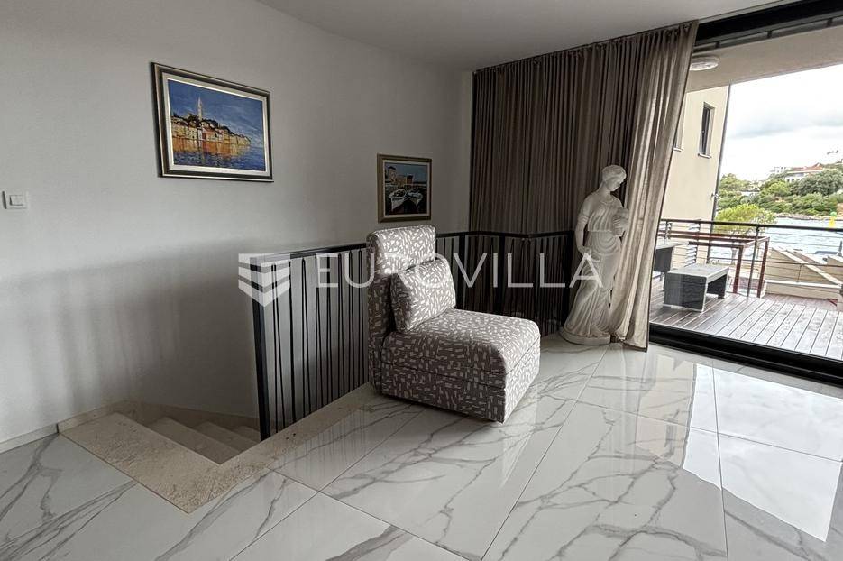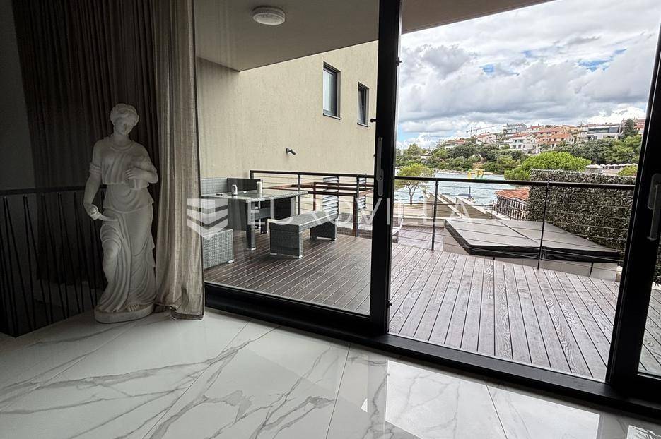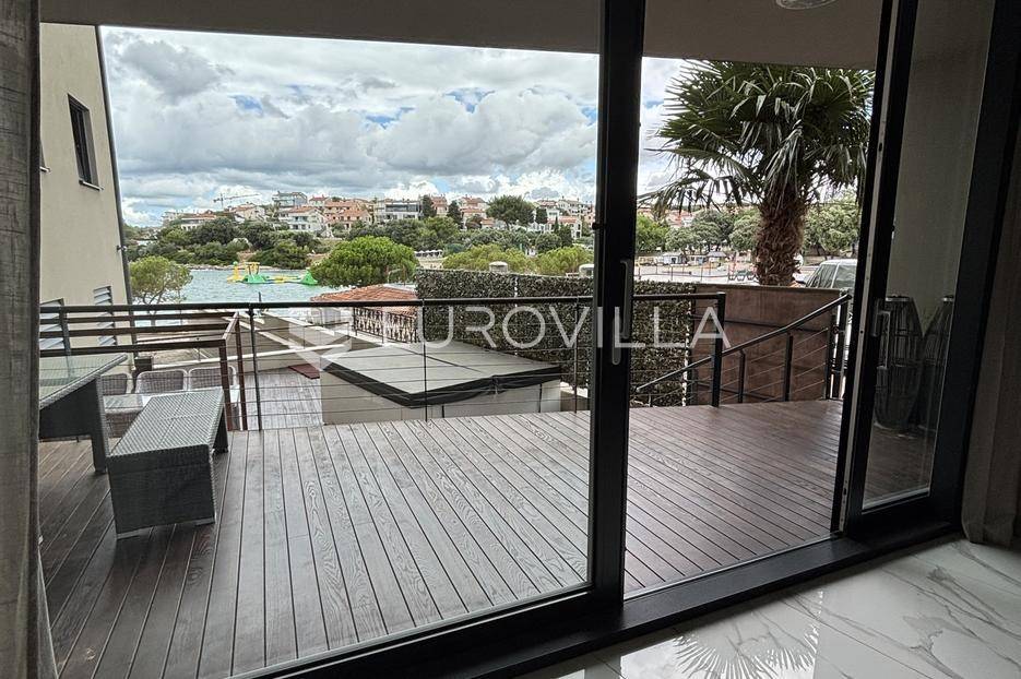 U našoj ponudi nudimo rijetku nekretninu koja se nalazi u atraktivnom turističkom naselju Pješčana uvala, lokacijski smještena u prizemlju novije zgrade prvi red do mora ukupne netto površine od 206,01 m2.Stan se sastoji od ulaznog hodnika, kuhinje, blagovaonice, dnevnog boravka, dvije prostrane natkrivene terase gdje je smješten jacuzzi s koje se pruža direktan pogled na more, tri kupaonice, ostave, četiri spavaće sobe, vrta i jedno nenatkriveno parking mjesto. Dok u podrumu zgrade nalazi garaža i spremište koje također pripadaju budućem kupcu ovog stana.Stan se prodaje kompletno namješten, bez potrebnih ulaganja, a ovako tražena lokaciji prava je rijetkost na tržištu.U neposrednoj blizini su zaista svi sadržaji koji opravdavaju ovu iznimnu poziciju.Cijena na upit.Za sva dodatna pitanja, potrebne informacije ili želju za organizacijom termina razgleda stana slobodno nas kontaktirajte.... Više na eurovilla.hr, ID: 503629