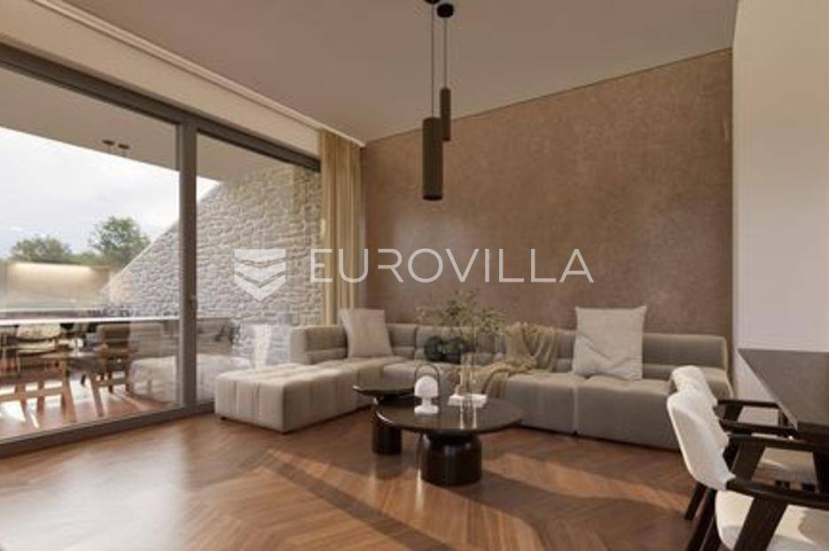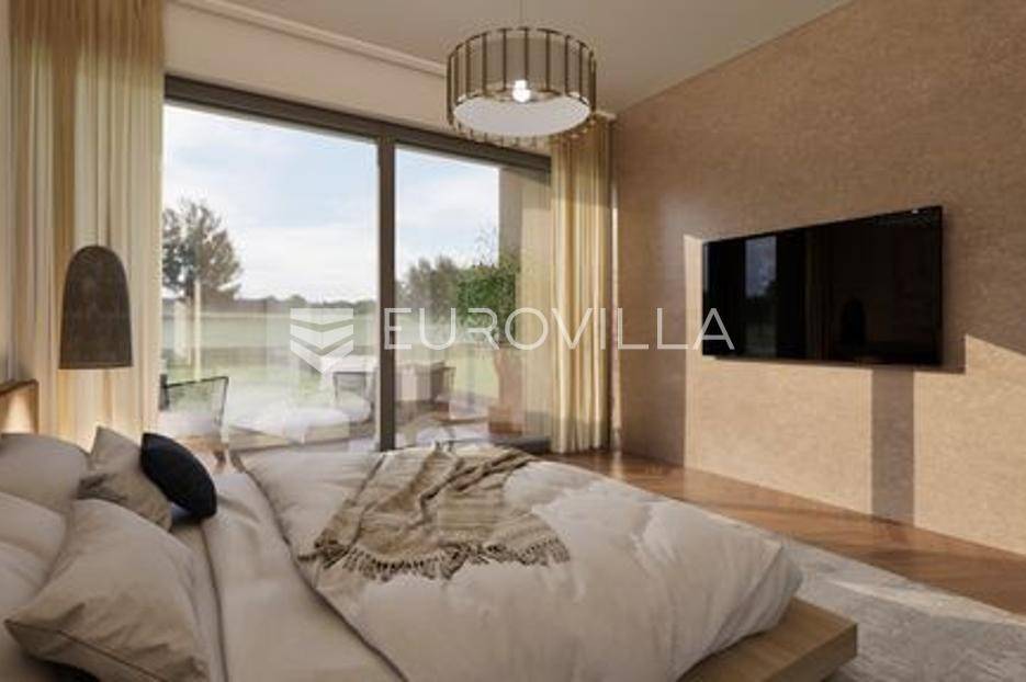 U Ližnjanu se nalazi ova moderna i dizajnerski projektirana dvojna kuća oznake A, sa vrtom i bazenom, 111 m2.Smještena je u uređenom okruženju gdje se već nalaze elegantne obiteljske kuće. Prizemni se dio sastoji od komfornog ulaznog dijela, jedne spavaće sobe, kupaone, kuhinje i modernog dnevnog boravka s velikom 5 metarskom staklenom stijenkom, izlazom na vlastiti bazen i vrtni dio od 60 m2.Unutrašnjim se stubištem penje na gornju etažu gdje se nalaze još dvije spavaće sobe svaka sa svojom kupaonom, velika klizna staklena stijenka s izlazom na terasu.Sve spavaće sobe imaju klima uređaj, na podu je predviđen laminat, dok je ostali stambeni dio opremljen kvalitetnom talijanskom keramikom. Električne rolete u svim prostorijama, komarnici, podno grijanje predviđeno je u kupaonama, protuprovalna vrata, smart home sustav grijanja i hlađenja, smart home bojler. Na uređenoj okućnici, kući pripadaju dva parkirna mjesta.Udaljenost od obližnjih uređenih plaža je 10 minuta laganog hoda, dok su svi ostali sadržaji potrebni za život također u neposrednoj blizini.U prodajnu cijenu nije uračunat PDV.Početak gradnje 09/2025Za dodatne informacije stojimo Vam na raspolaganju.... Više na eurovilla.hr, ID: 506886