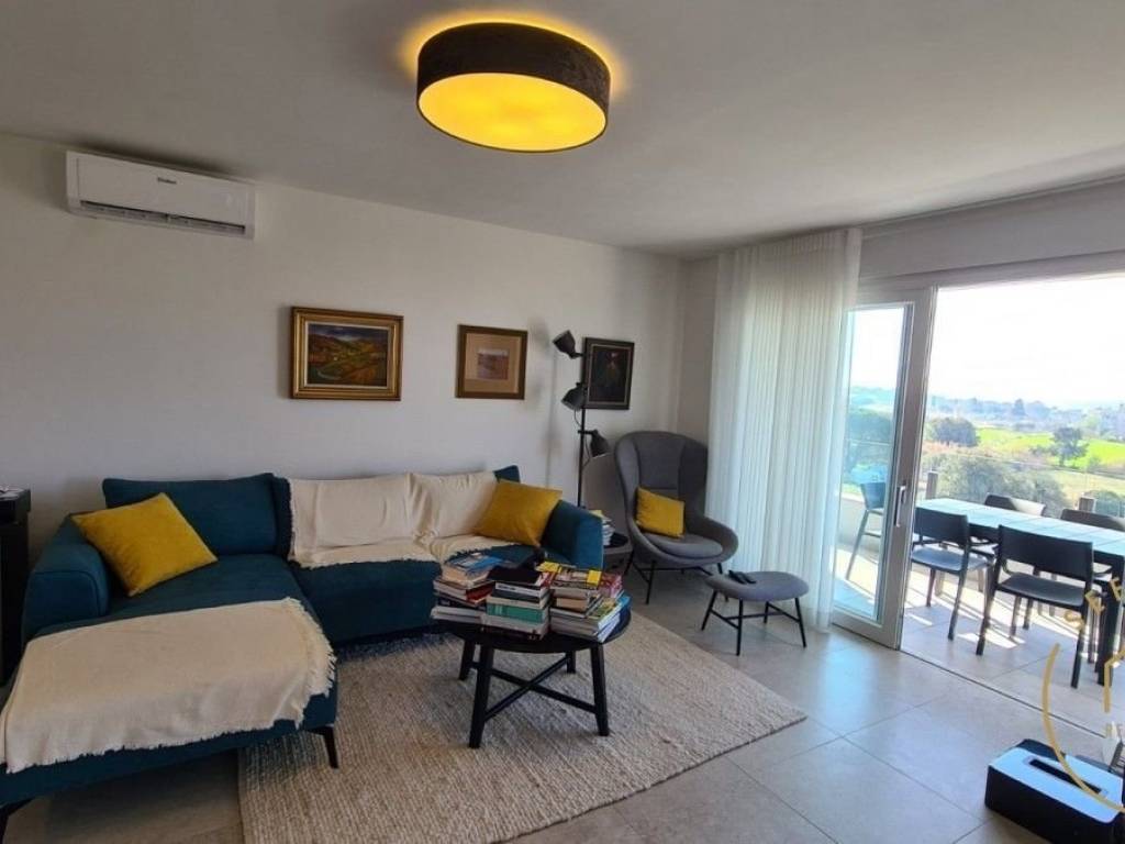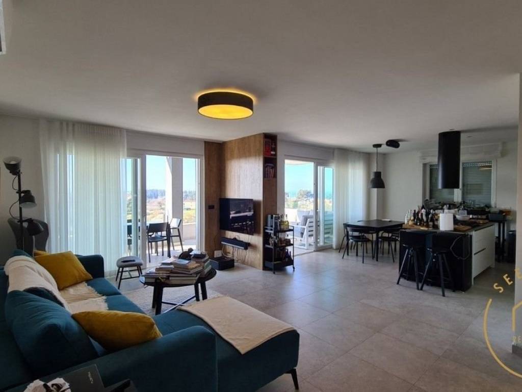 A spacious terrace with a view of the sea extends along the kitchen, living room and bedroom, with a total area of ​​28.59 m2.