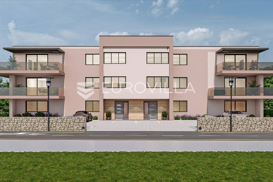Na prodaju je prostran i moderno uređen dvosoban stan smješten na drugom (zadnjem) katu stambene zgrade A, koja je dio vrhunskog projekta s ukupno 16 stanova raspoređenih u dvije zgrade. Posebnost ovog kata je intimnija atmosfera - nalaze se samo dva stana, za razliku od ostalih katova gdje su po tri.Stan oznake 2.1.A (unesi točnu oznaku) ukupne obračunske površine 87,78 m², pruža 75,12 m² zatvorenog stambenog prostora i sastoji se od ulaznog prostora, prostranog dnevnog boravka s blagovaonicom i kuhinjom, dvije spavaće sobe, kupaonice, gospodarske prostorije, te velikog balkona površine 30,64 m² - idealnog za uživanje na otvorenom. Uz stan dolazi spremište od 8 m² u podrumu te dva privatna parkirna mjesta, uključena u cijenu.Stan je projektiran s naglaskom na privatnost, prozračnost i udobnost. Prostrani balkon omogućuje uređenje dodatne vanjske zone za boravak, ručavanje ili opuštanje s pogledom.Gradnja se izvodi prema najvišim standardima - Caparol fasadni sustav s 14 cm izolacije, PVC prozori s trostrukim staklom i komarnicima, te Mitsubishi Multi-Split sustav grijanja i hlađenja jamče ugodan boravak kroz cijelu godinu. Podne obloge čine parket prve klase i talijanska keramika Florim, a kupci imaju mogućnost biranja završne obrade prema vlastitim željama.Zgrada ima lift, dvorište će biti uređeno i popločano opločnicima, a stanovi su opremljeni video portafonom, telefonskim priključkom, satelitskim sustavom i internetom.Završetak radova predviđen je za svibanj 2026. godine, a stan se prodaje preko tvrtke, što znači da kupac ne plaća 3% poreza na promet nekretnina.Savršen stan za one koji žele više mira, privatnosti i vanjskog prostora - odlična prilika za život ili investiciju.Za više informacija, slobodno nas kontaktirajte!... Više na eurovilla.hr, ID: 525862