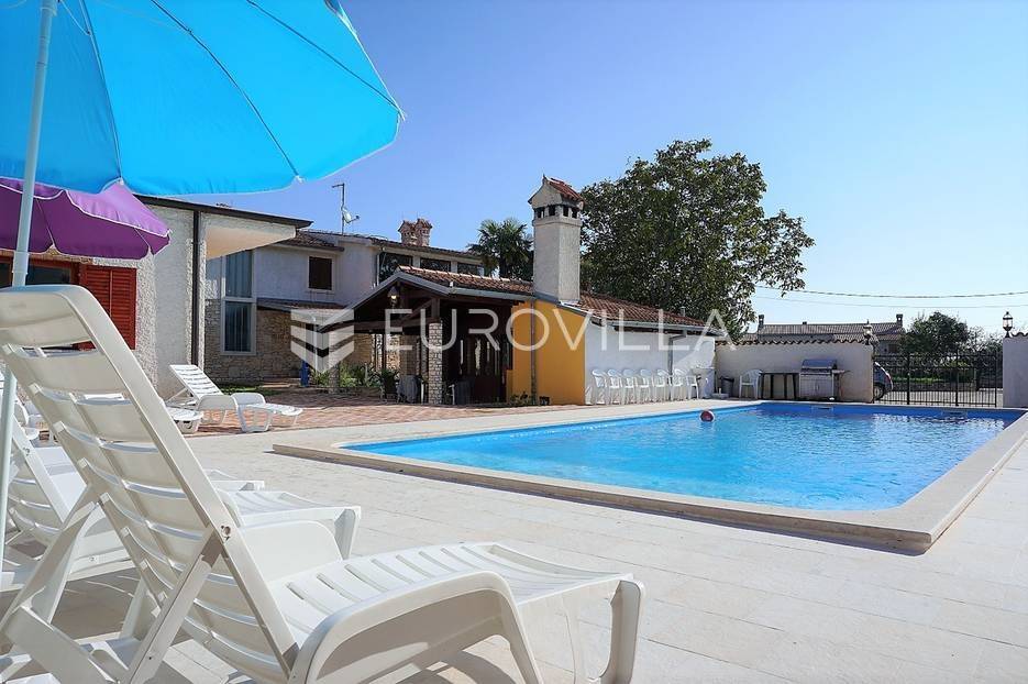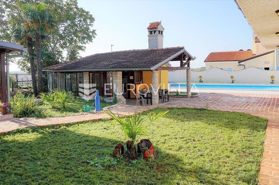 Nekoliko kilometara od Pule u mirnom istarskom naselju na samostalnoj parceli veličine 1960 m2 građevinskog zemljišta prodaje se stambeno poslovni objekt, stancija u funkciji turizma. Nalazi se samo 2500 metara udaljena od mora i prirodnih plaža. Kompletno imanje je ograđeno kovanom željenom ogradom. Korišteni su prirodni materijali kamen i drvu koji doprinose mediteranskom štihu. Ovaj multifunkcionalni objekt kompletno je obnovljen i opremljen 2018. godine.Sastoji se od:Vila s dvije etaže (6 spavaćih soba, 4 kupaonice, 2 dnevna boravka, kuhinja, aula, trijem, pomoćne prostorije)Apartman (2 sobe, kuhinja, kupaonica)Studio apartman s kuhinjom i kupaonicomRustikalna konoba u masivnom drvetu i kamenu, s ognjištem i trijemomRestoran (kuhinja, sanitarije, spremište, radionica)Sportski sadržaji: velika Gym dvorana (teretana od 100 m2 s gimnastičkom opremom), bilijar, stolni tenis, košarkaško igrališteVanjski bazen 60 m2 s plaatom plitke vode, osvijetljen iznutra i izvana, strojarnicaŠetnica (široka 2 m) popločana kamenim pločicama, suncobrani, stolovi i stoliceSolarni vanjski tuš s toplom vodomAsfaltirani parking 350 m2Zeleni vrtovi s cvijećem i dekoracijama, šetnicePostoji mogućnost daljnje gradnje i podizanja katova.Kompleks je aktivan i u turističkoj je funkciji.Dodatne informacije na upit.... Više na eurovilla.hr, ID: 526479