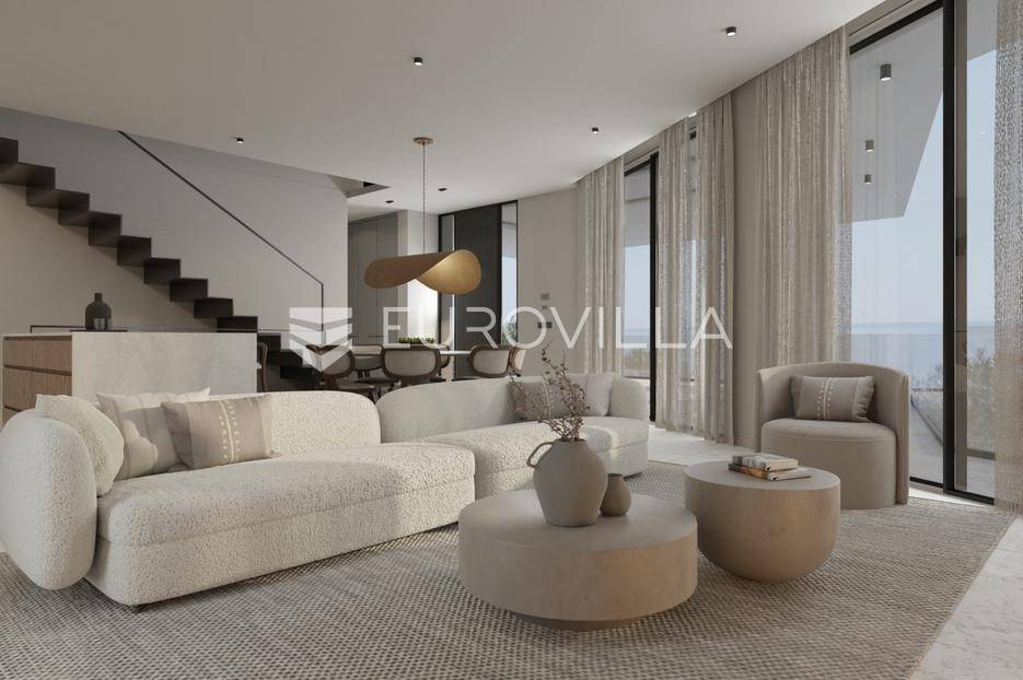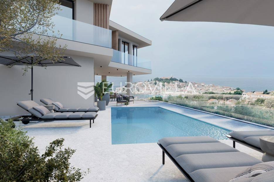 Ova luksuzna, vrhunski opremljena vila u Primoštenu, nudi savršen spoj modernog dizajna i udobnosti, raspoređena 293,98 m2, na tri etaže - podrum, prizemlje i prvi kat.Podrum ove impresivne vile uključuje prostranu garažu za više automobila, tri pomoćna prostora koji mogu služiti kao spremište, teretana ili vinska soba, te natkriveni ulaz koji omogućava diskretan pristup.U prizemlju, vila nudi jednu prostranu spavaću sobu, modernu kupaonicu i dodatni toalet. Središnji dio prizemlja čini veliki, svijetli open space prostor koji uključuje potpuno opremljenu kuhinju, elegantnu blagovaonicu i udoban dnevni boravak. Ovaj prostor vodi na natkrivenu terasu, idealnu za opuštanje u sjeni, dok se nenatkrivena terasa s bazenom pruža savršeno mjesto za sunčanje i uživanje u mediteranskom suncu.Na prvom katu nalazi se prostrano predsoblje koje vodi do tri luksuzno uređene spavaće sobe, svaka sa svojom privatnom kupaonicom, pružajući maksimalnu privatnost i udobnost. Dvije terase, jedna natkrivena i jedna nenatkrivena, omogućuju uživanje u predivnom pogledu na more i okolinu, te pružaju dodatni prostor za opuštanje i druženje.Ova vila je osmišljena da pruži maksimalnu udobnost i luksuz, savršena za one koji traže vrhunski dom na jednoj od najatraktivnijih lokacija u Primoštenu.... Više na eurovilla.hr, ID: 530630