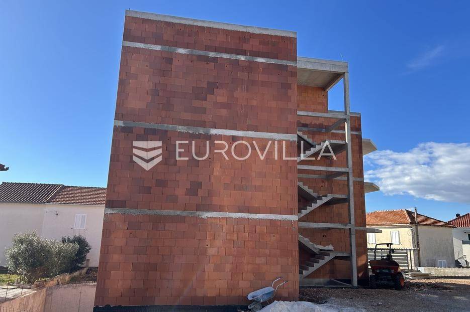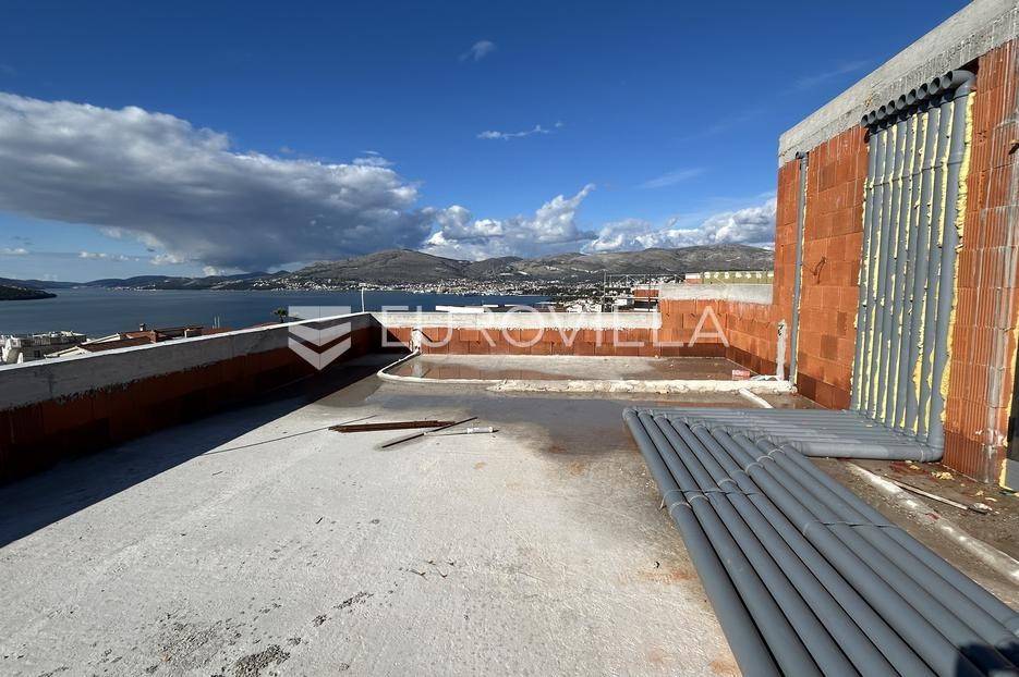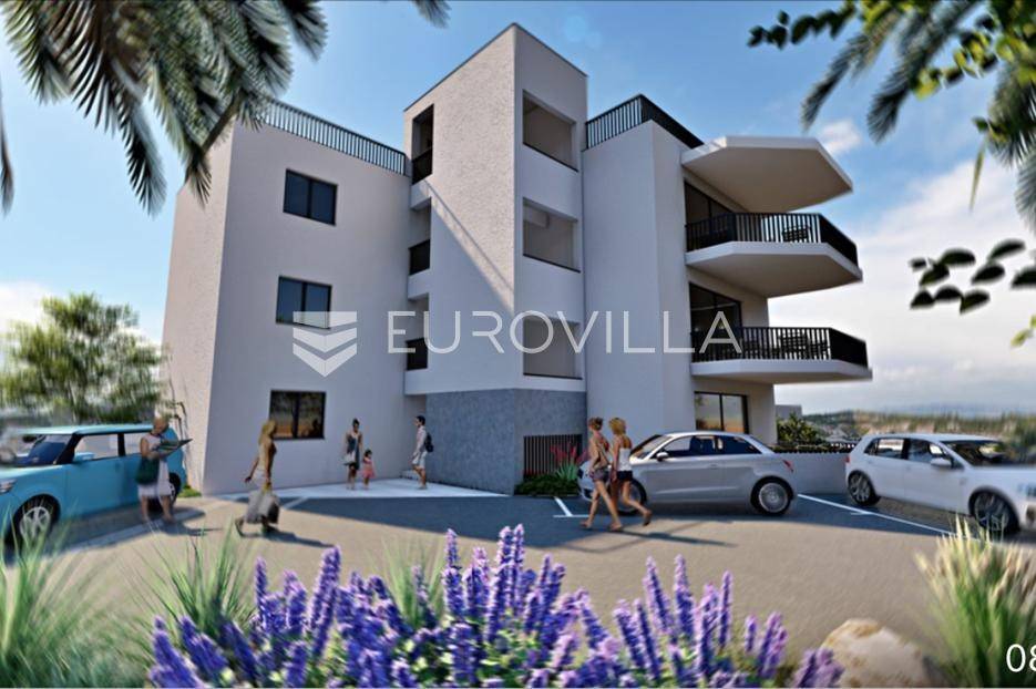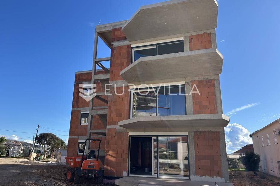 Apartman S5 orijentacije sjeverozapad se sastoji od dnevnog prostora površine 31 m2 (kuhinja, blagovaonica i dnevni boravak), dvije spavaće sobe površine 9,5 m2 odnosno 8,6 m2, kupaonice površine 5,2 m2, i natkrivene terase površine od 14 m2.Apartmanu pripada nenatkrivena krovna terasa površine 60 m2 i parking mjesto u garaži.Ukupna neto korisna površina stana je 76 m2 a površina zatvorenog stambenog prostora je 54,5 m2.U popularnom odmaralištu srednje Dalmacije, Okrugu Gornjem na Čiovu gradi se stambeni objekta s 6 apartmana na pješačkoj udaljenosti od plaže od 450 m.Objekt se gradi na 3 etaže (prizemlje, prvi kat i drugi kat) uz iskoristivu krovnu terasu koja pripada stanovima na 2 katu.Svi apartmani će biti opremljeni klima uređajima u dnevnom prostoru a podne obloge će biti od keramičkih pločica. Stakla će biti troslojna a vanjska fasadna izolacija će biti od stiropora debljine 8 cm.U fazi izgradnje još je moguće dogovarati uređenje interijera.Očekivani završetak objekta i useljenje je ljeto 2026 godine. U tijeku su radovi na konstrukciji objekta.Investitor je fizička osoba a način plaćanja je: 30 % prilikom potpisa predugovora / 30 % nakon završetka konstrukcijskih radova / 15 % nakon završetka fasade / 15 % nakon završetka unutrašnjosti / 10 % nakon ishođenja uporabne dozvole.Kako je otok Čiovo svojevrstan produžetak grada Trogira, nudi pregršt mogućnosti za odmor, rekreaciju i kupanje te razgledavanje mnogobrojnih povijesnih spomenika.Mediteranska vegetacija, arhipelag s malim slikovitim otočićima, blaga klima i predivne plaže u skrovitim zaljevima čine ovo mjesto poželjnom destinacijom za stanovanje I odmor.Dodatne informacije - udaljenosti od važnijih lokacija:Plaža: 450 m / Trogir: 4,5 km / zračna luka: 8 km / Split: 30 kmKupovina: 150 m / restoran: 150 m / ljekarna: 200 m / banka: 300 mZa sva dodatna pitanja stojim na raspolaganju.... Više na eurovilla.hr, ID: 545427